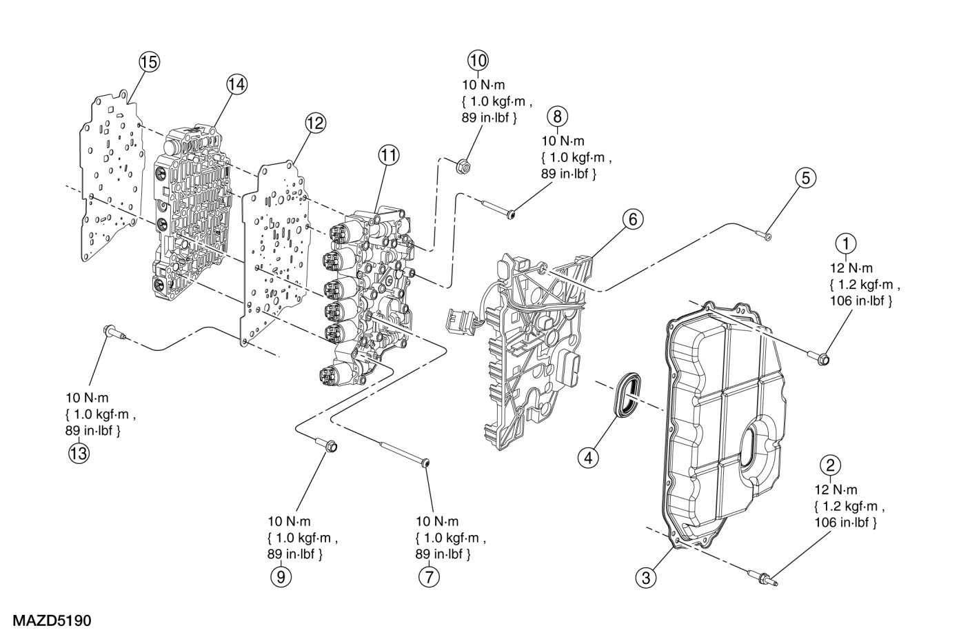 - Tighten to 12 Nm {1.2 kgf-m, 106 in-lbf}.