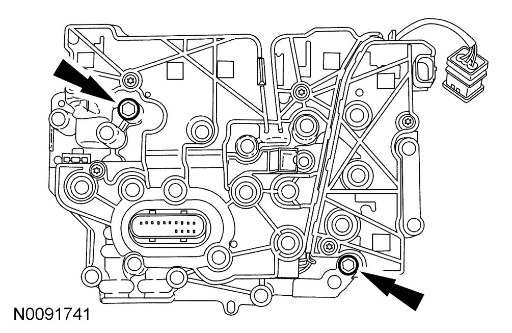 14. Remove the 2 bolts and separate the solenoid body from the main control valve body.