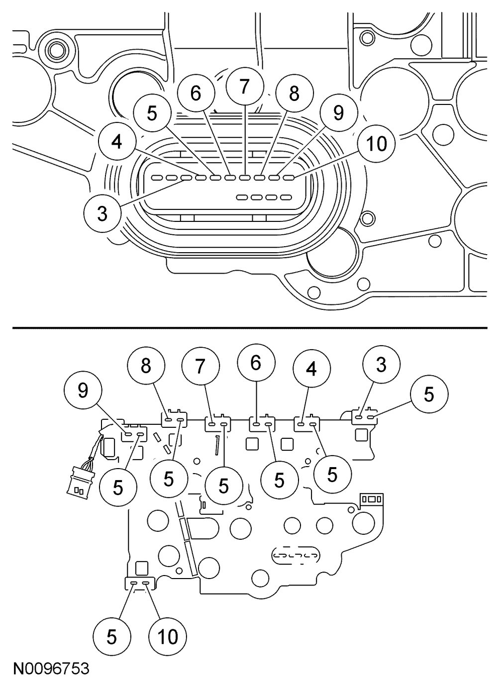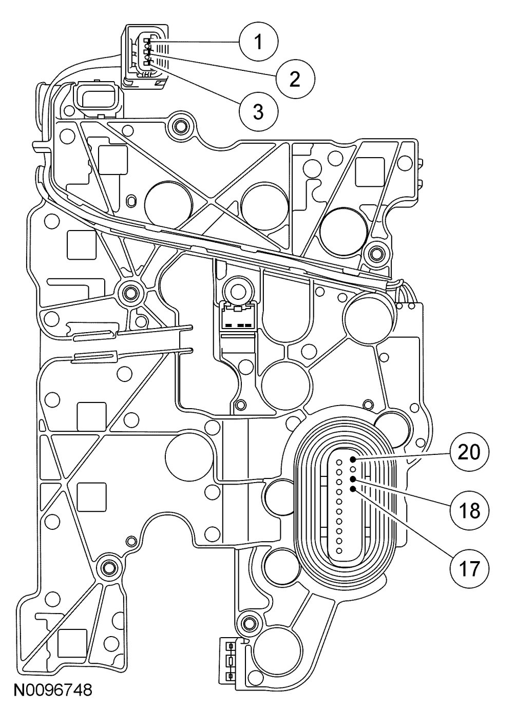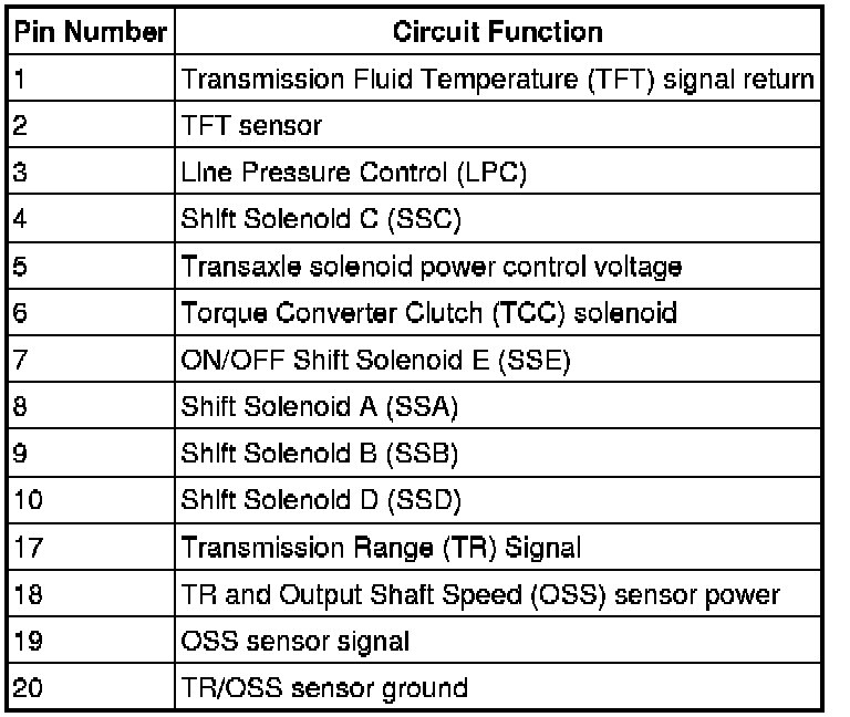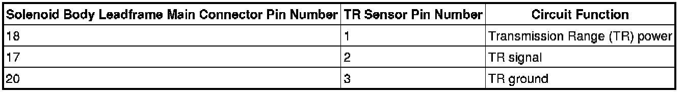 Solenoid Body Leadframe-to-Transmission Range (TR) Sensor Internal Circuit Diagram