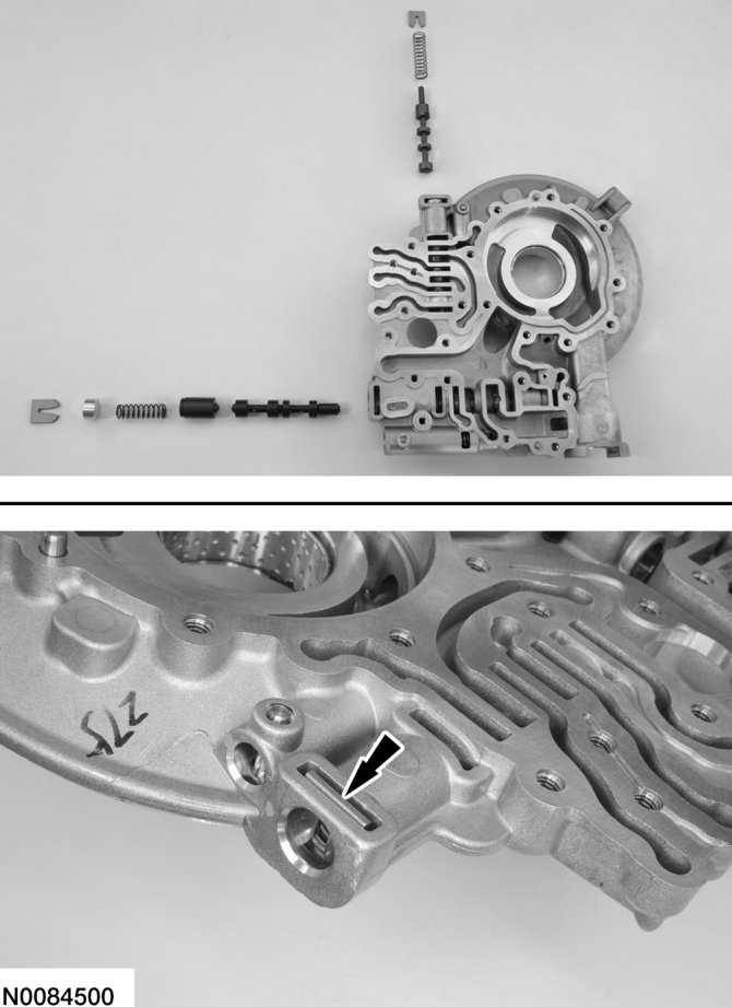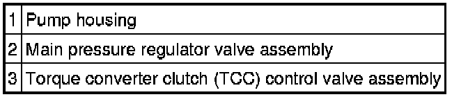 1. Assemble the TCC control valve and main pressure regulator valve and install the valves in the pump. Compress the valve springs with a screwdriver and install the retainers