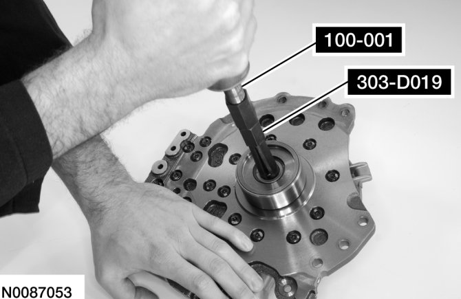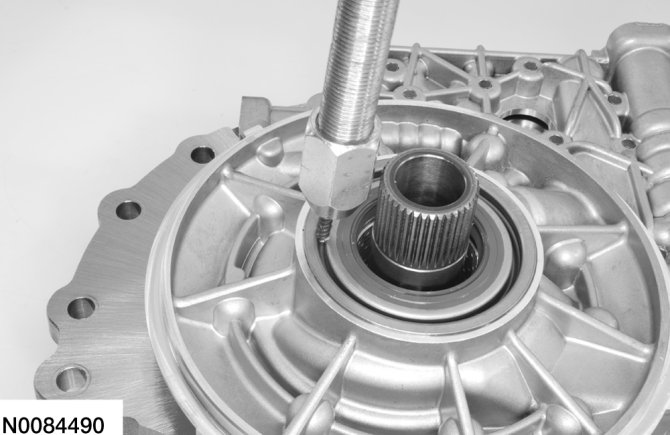 9. Using the Torque Converter Hub Seal Installer, install a new torque converter hub seal.