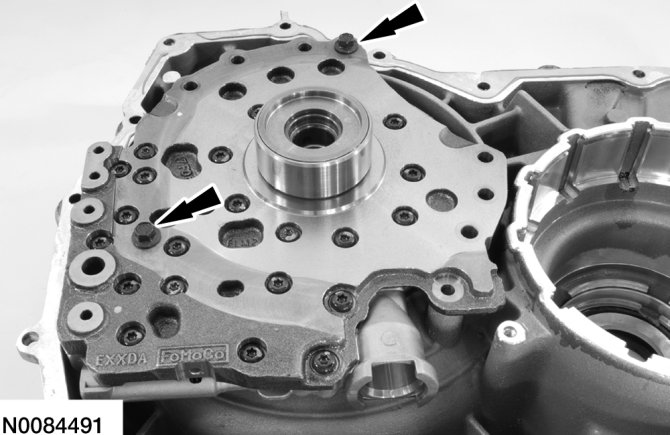 7. Remove the 2 bolts and the pump assembly from the torque converter housing.