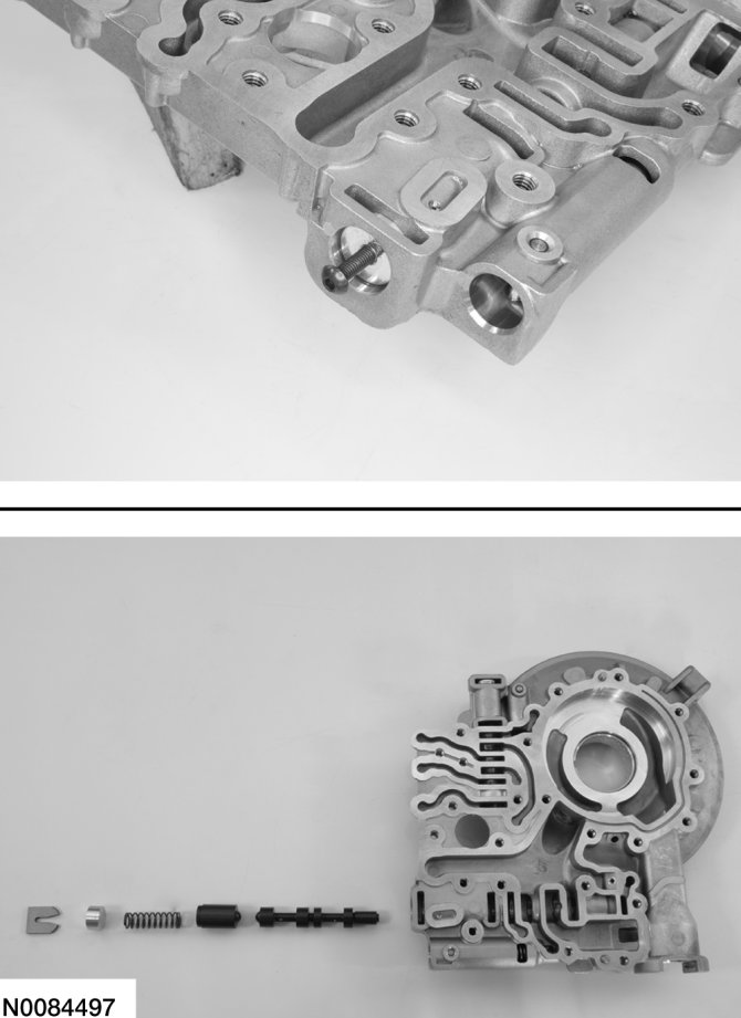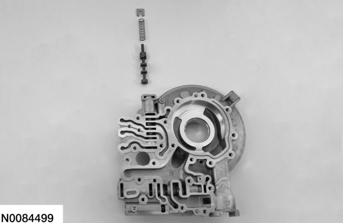 2. Assemble the TCC control valve and main pressure regulator valve and install the valves in the pump. Compress the valve springs with a screwdriver and install the retainers.