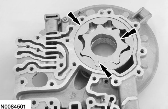 NOTE:The dot on the inner pump gear faces up.