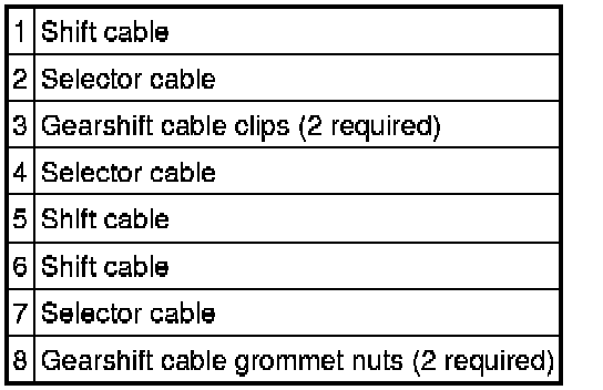 6. Disconnect the gearshift cables from the gearshift lever assembly.