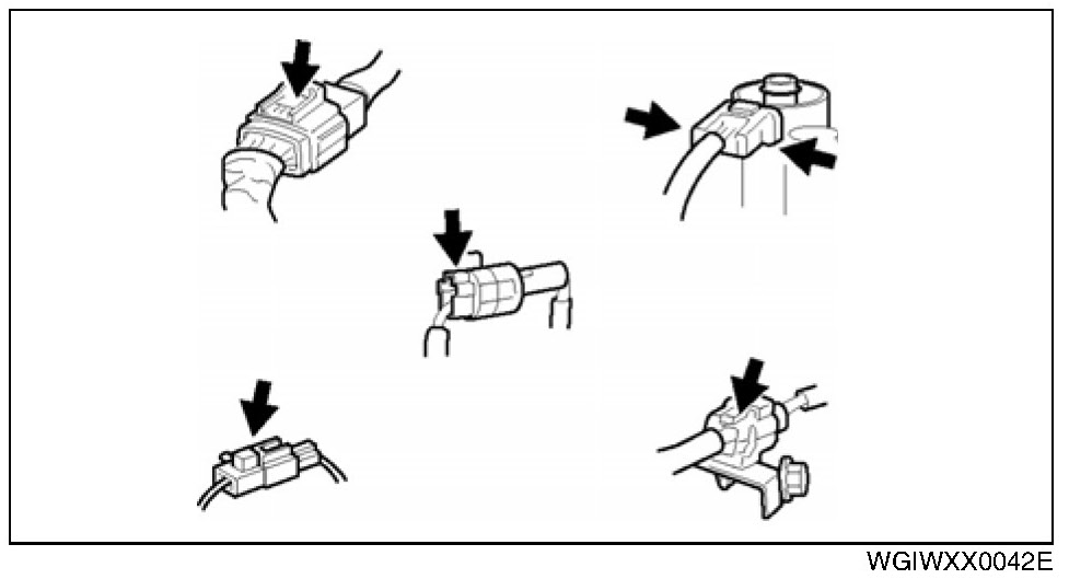- Inspect the terminals of waterproof connectors from the connector side since they cannot be accessed from the wiring harness side.