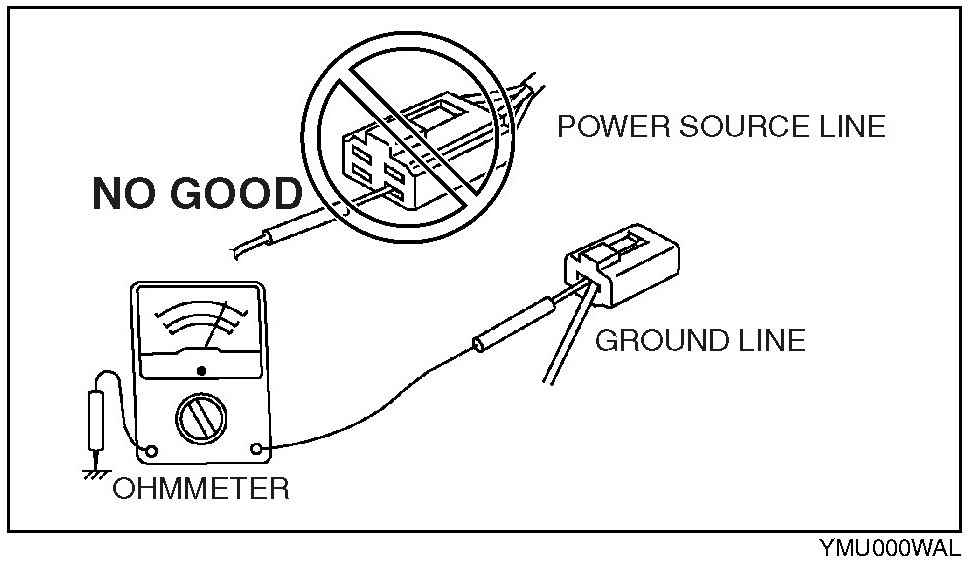 Caution : To prevent damage to the terminal, wrap a thin wire around the tester probe before inserting into terminal.