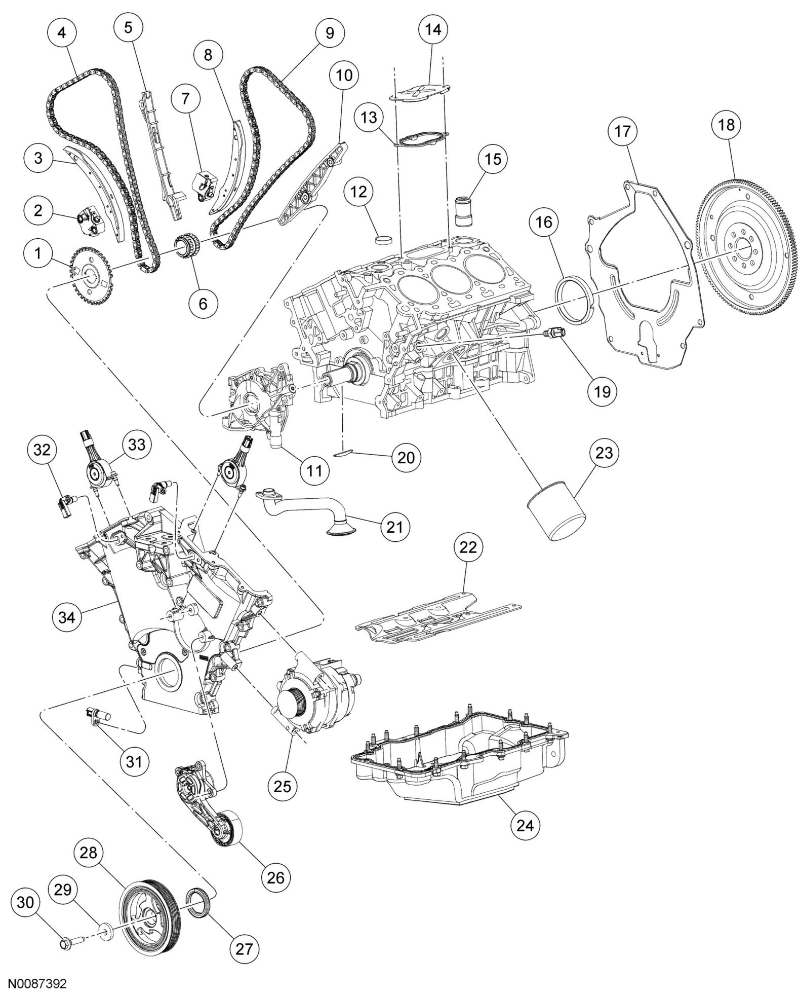 FRONT AND LOWER ENGINE BLOCK- 3.0L EXPLODED VIEW