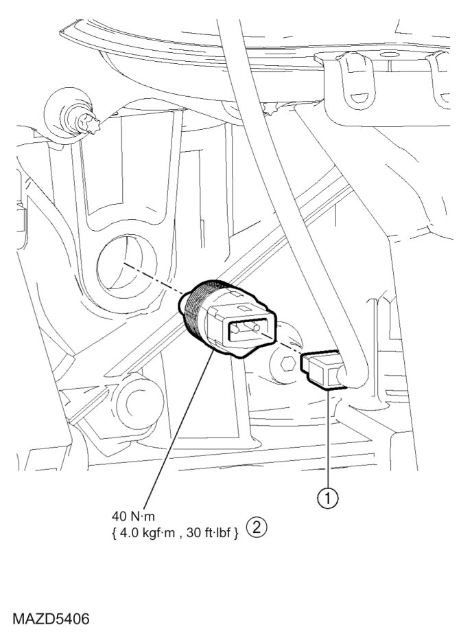 - To install, tighten to 40 Nm {4.0 kgf-m, 30 ft-lbf} (2.5L).