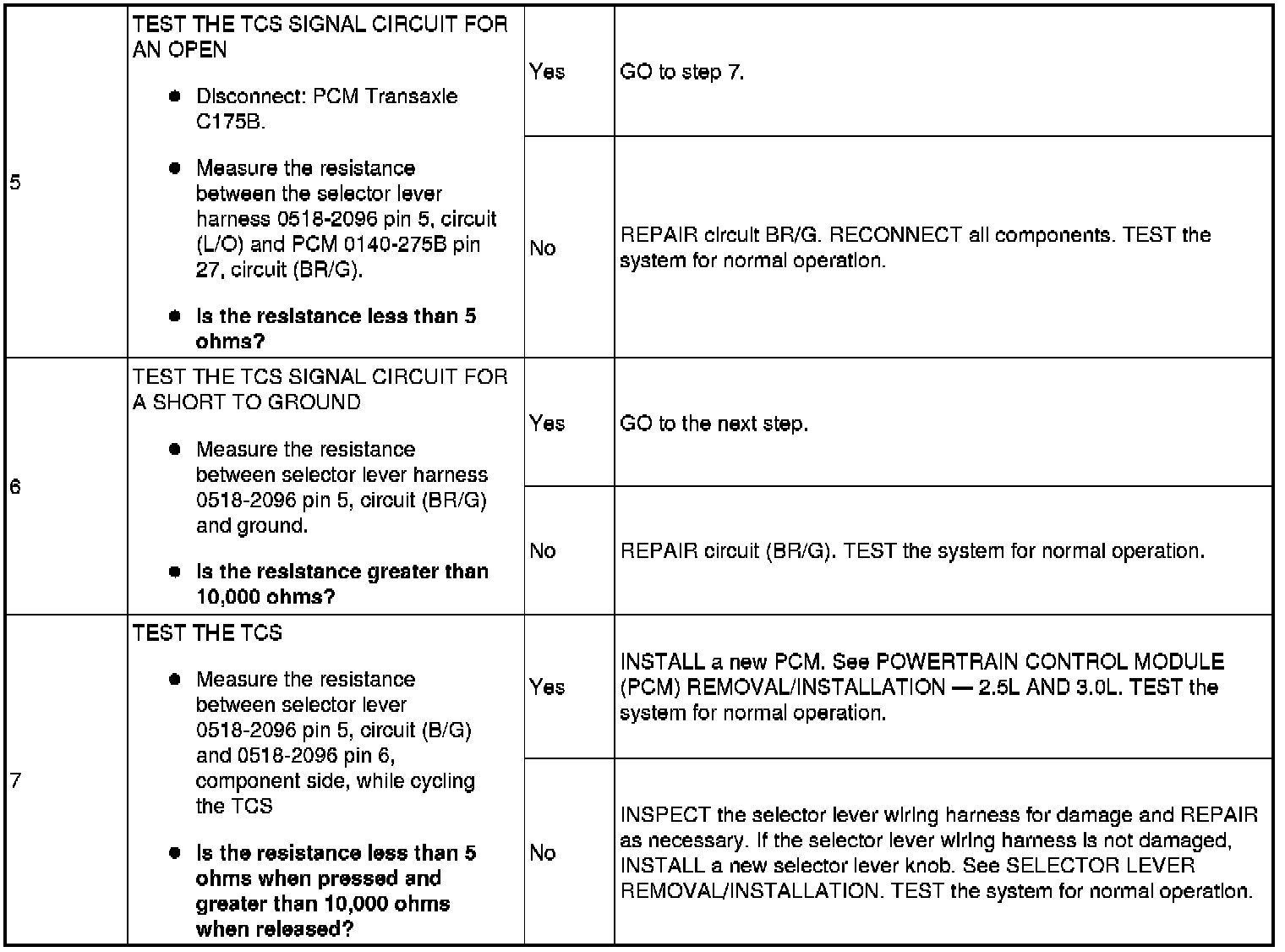 Pinpoint Test 3: Transmission Control Switch (TCS) Does Not Operate Correctly