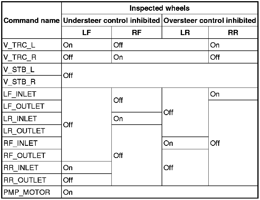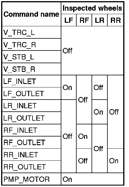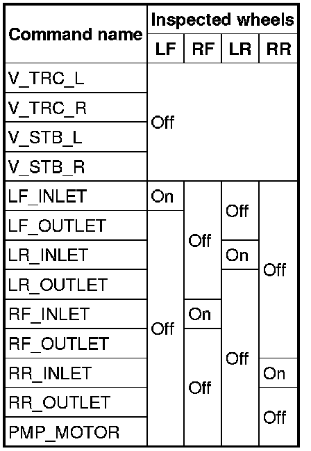 3. Set up an active command mode inspection according to the combination of commands below. Brake pressure retention
