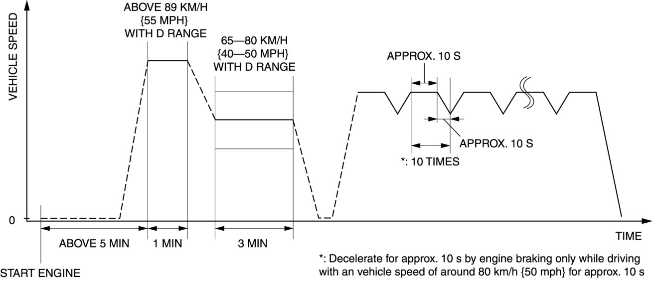 - Mode 03 (EGR System, A/F sensor heater, HO2S heater, A/F sensor, HO2S, and TWC Repair Verification Drive Mode)