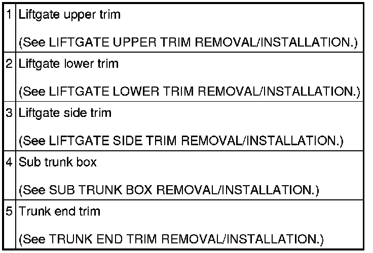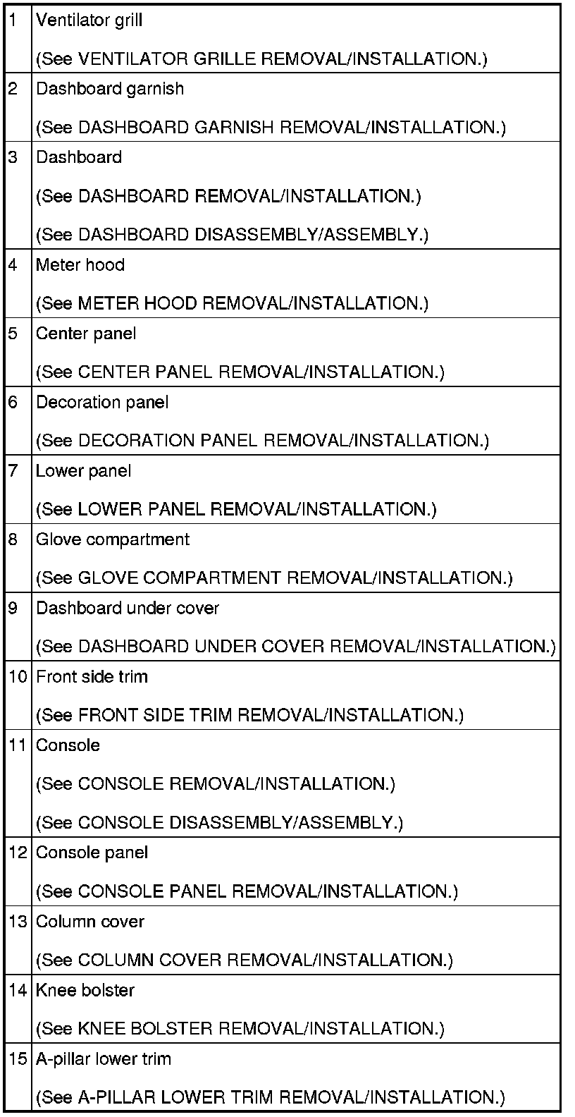 INTERIOR TRIM LOCATION INDEX
