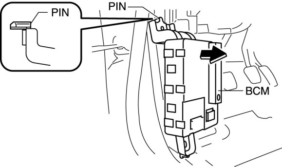 9. Pull the BCM outward and remove the pin from the body.