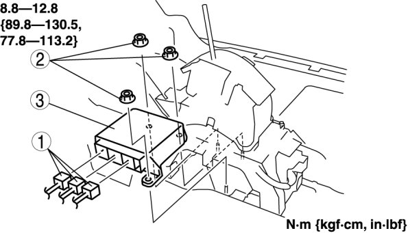 - Connecting the SAS control module with the SAS control module not securely fixed to the vehicle is dangerous. When the ignition switch is turned to the ON position, the SAS control module could tilt causing the SAS control module to detect that the vehicle is in a rollover condition, which may accidentally operate (deploy) the curtain air bag module and pre-tensioner seat belt. Therefore, before turning the ignition switch to the ON position with the connector connected, securely fix the SAS control module to the vehicle.