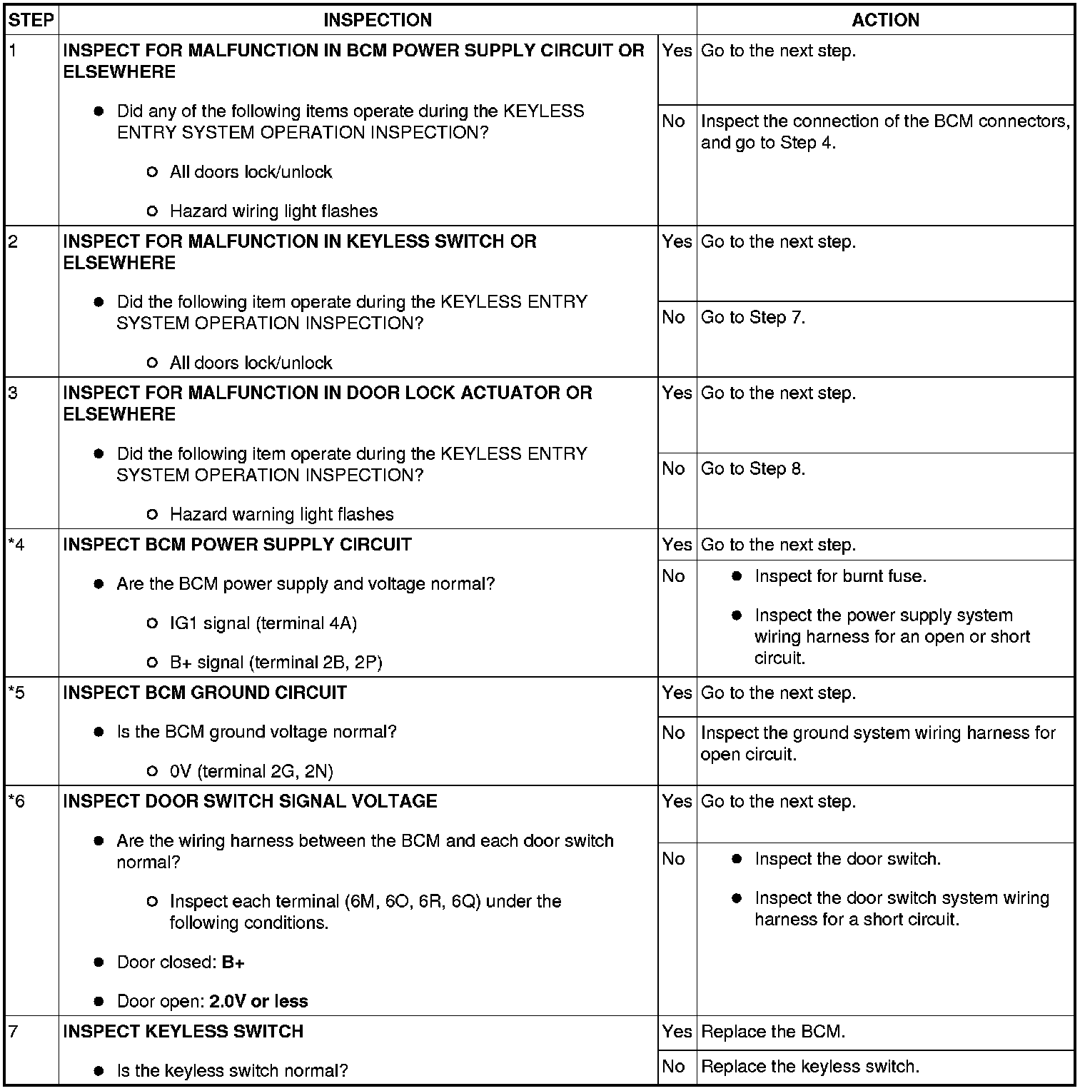 No. 1 Keyless Entry System Does Not Operate Normally