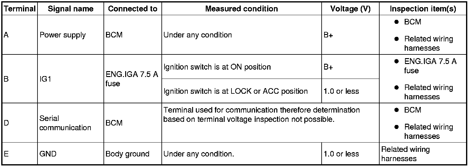 Terminal Voltage Table (Reference)