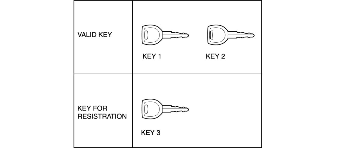 - The "Valid key" referred to in this information indicates the key that can start the engine.