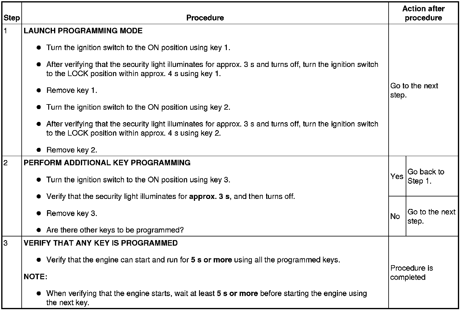 - This procedure is performed for disabling the No.1 Additional Key Programming Procedure (Using Two Valid Keys).