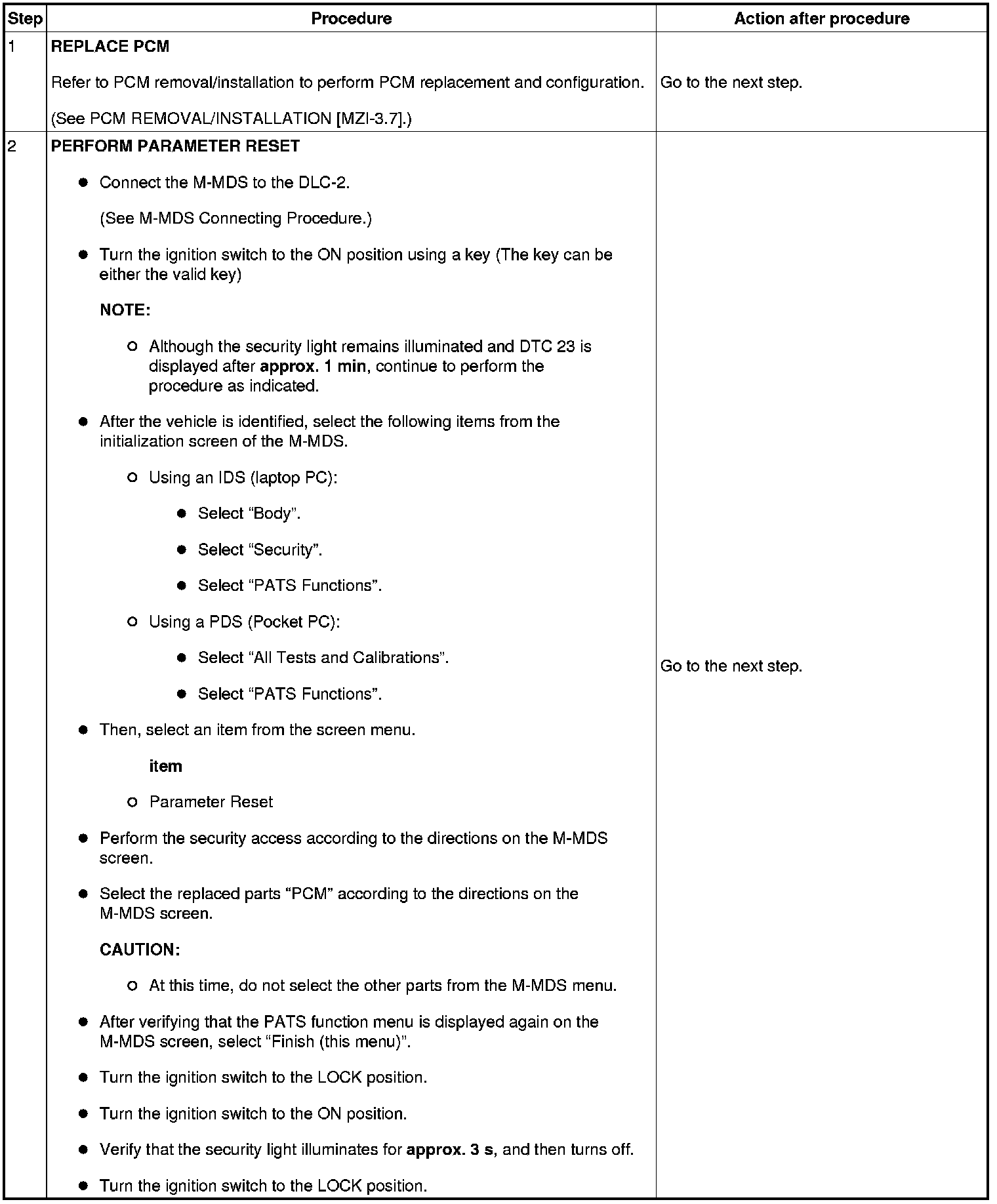 No.4 Programming Procedure Due to PCM Replacement