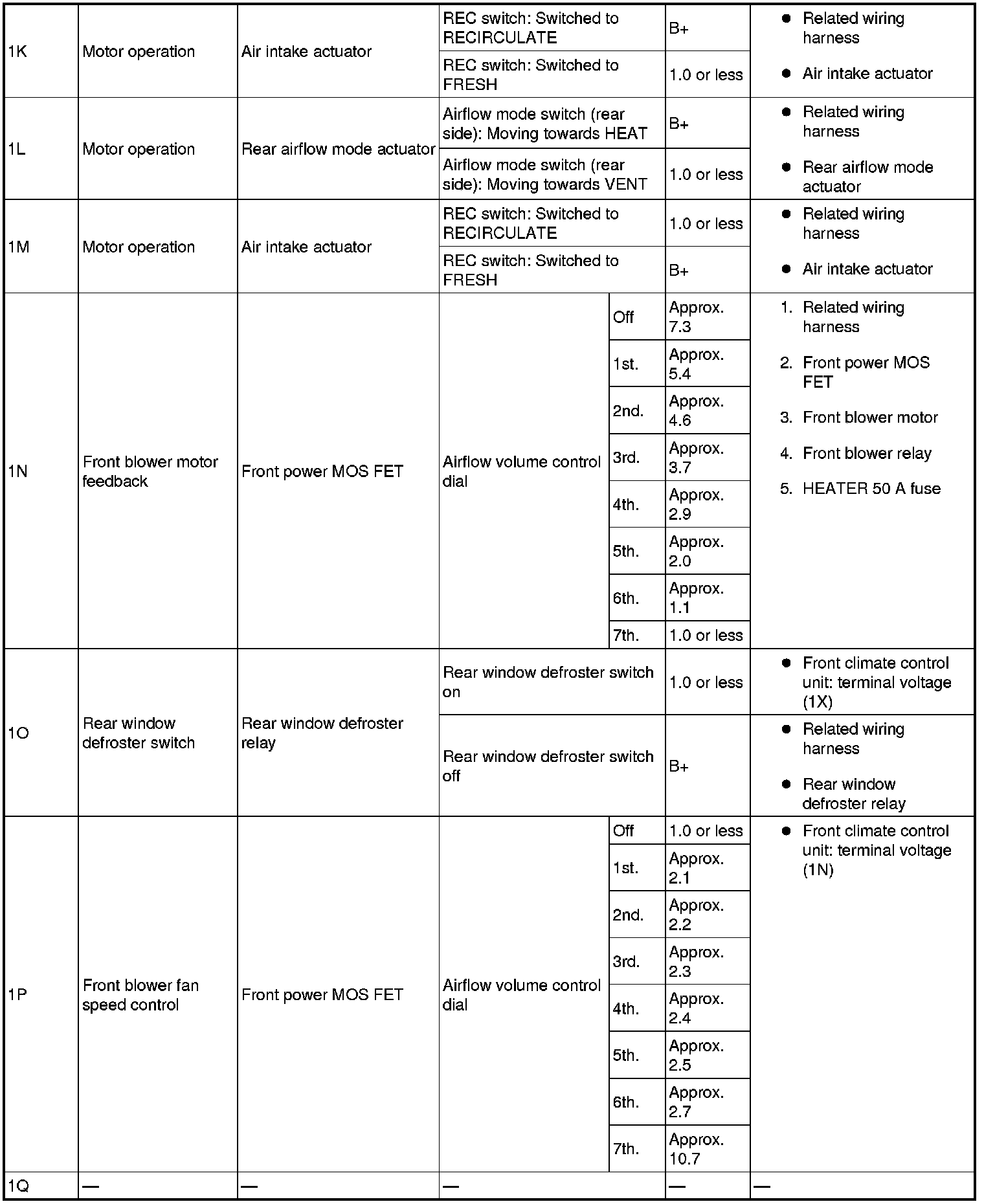 - If the parts under "Inspection item (s)" are found to be normal, replace the front climate control unit.