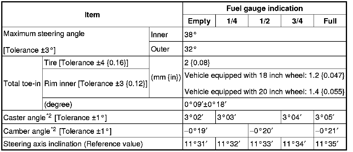FRONT WHEEL ALIGNMENT [AWD]Front wheel alignment [AWD] (Unloaded)*1