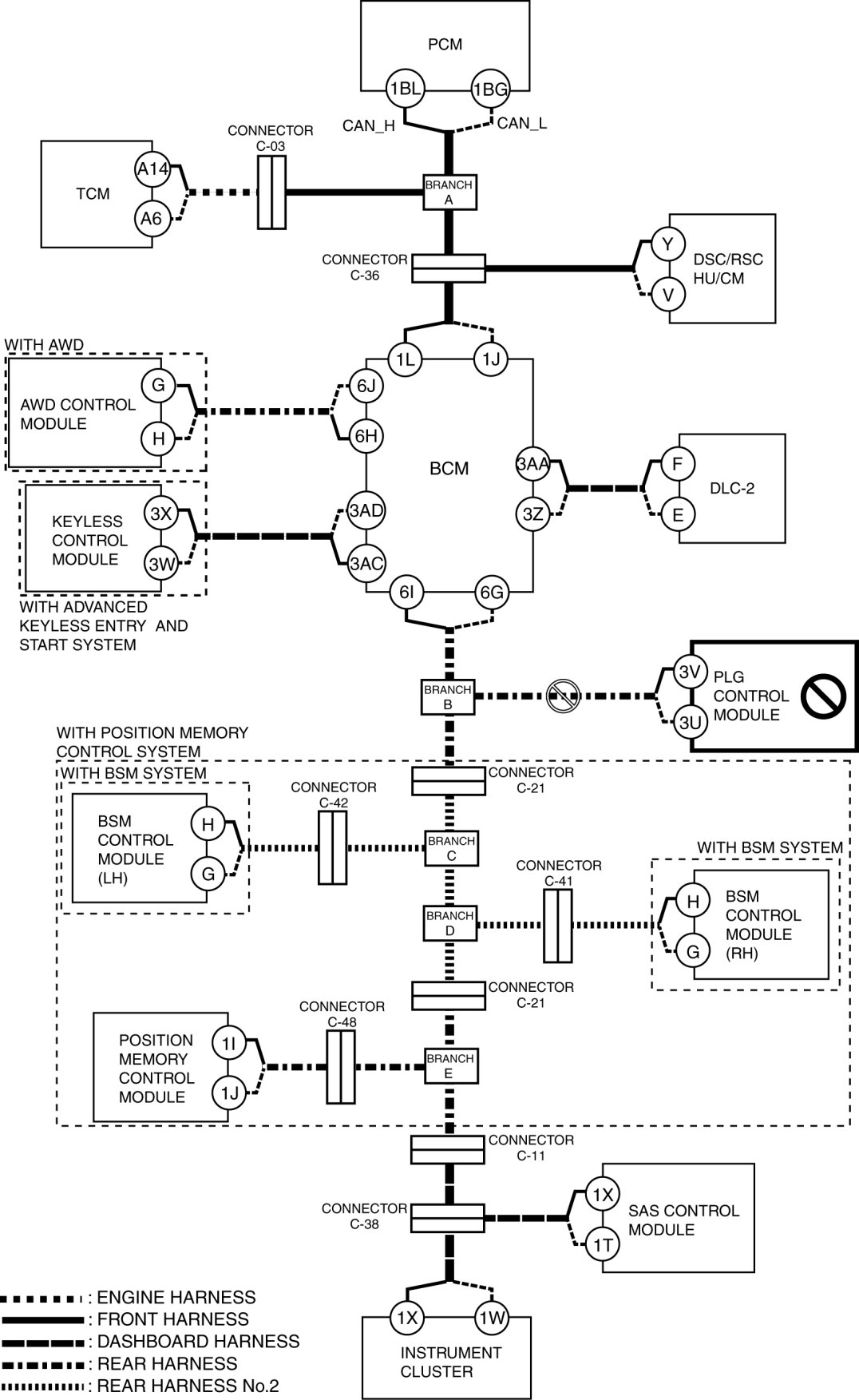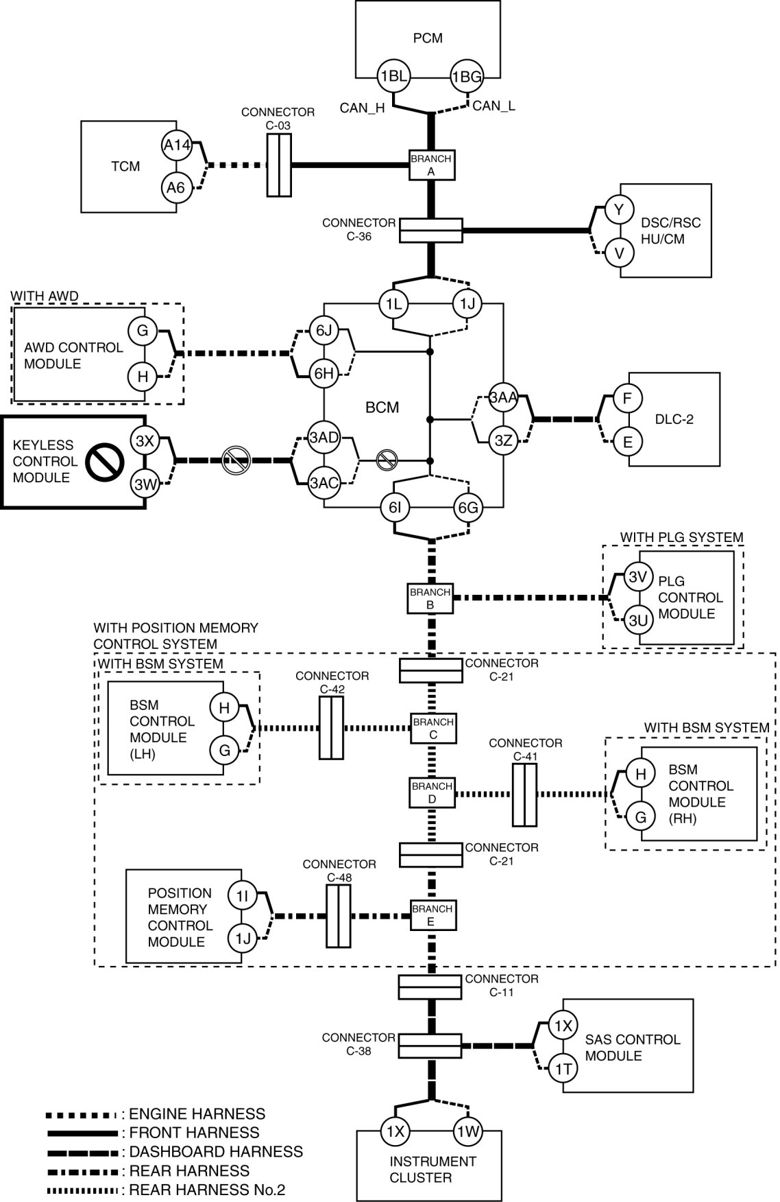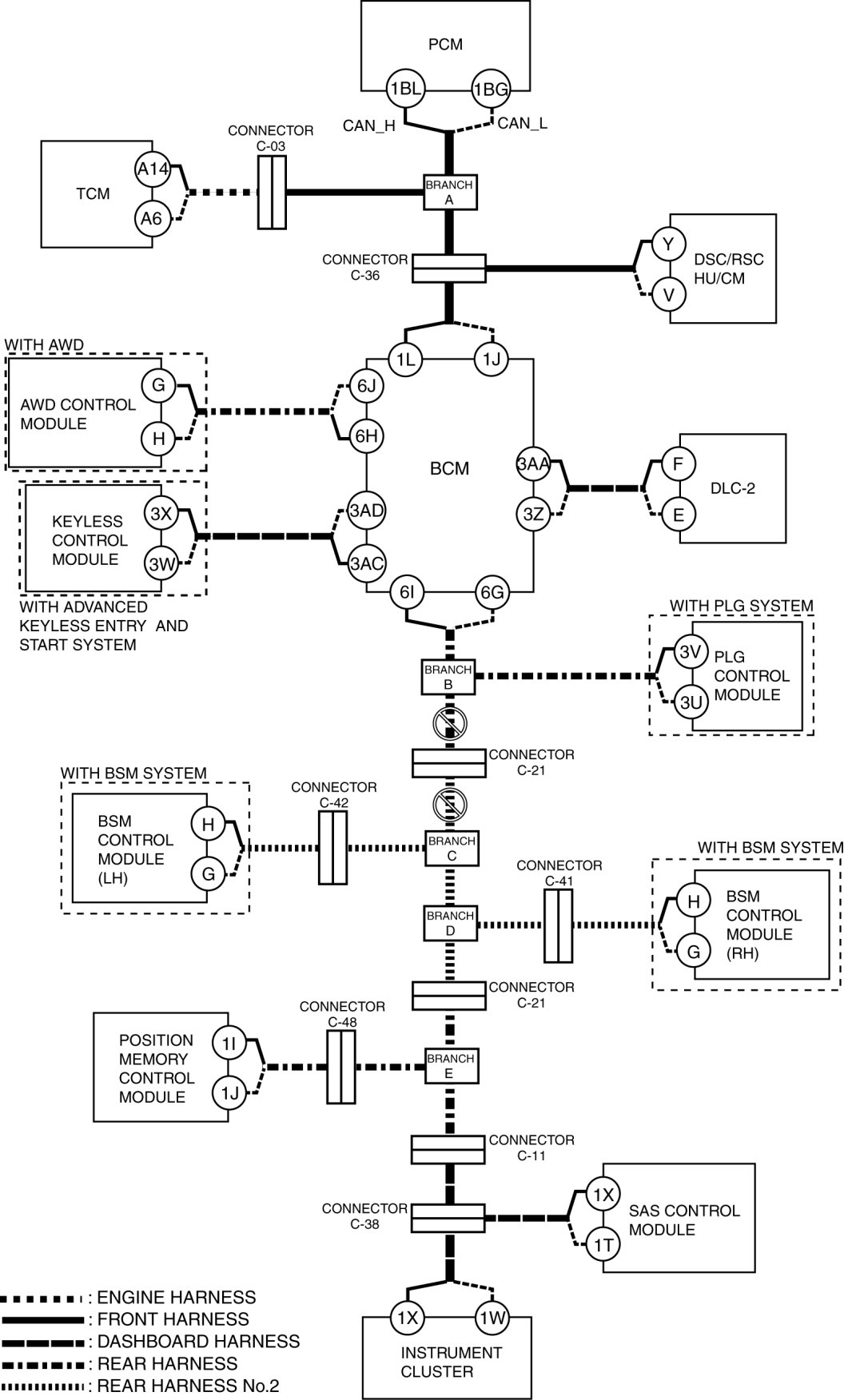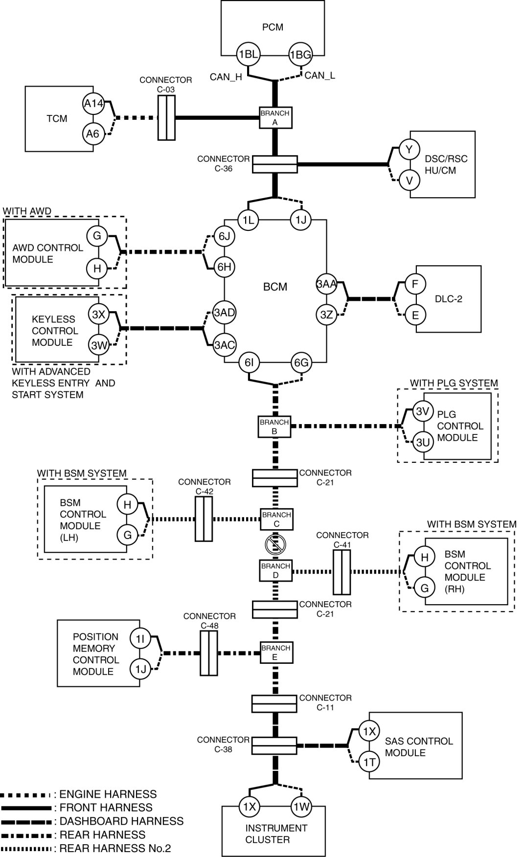 - Wiring harness between DSC/RSC HU/CM terminal Y and connector C-36