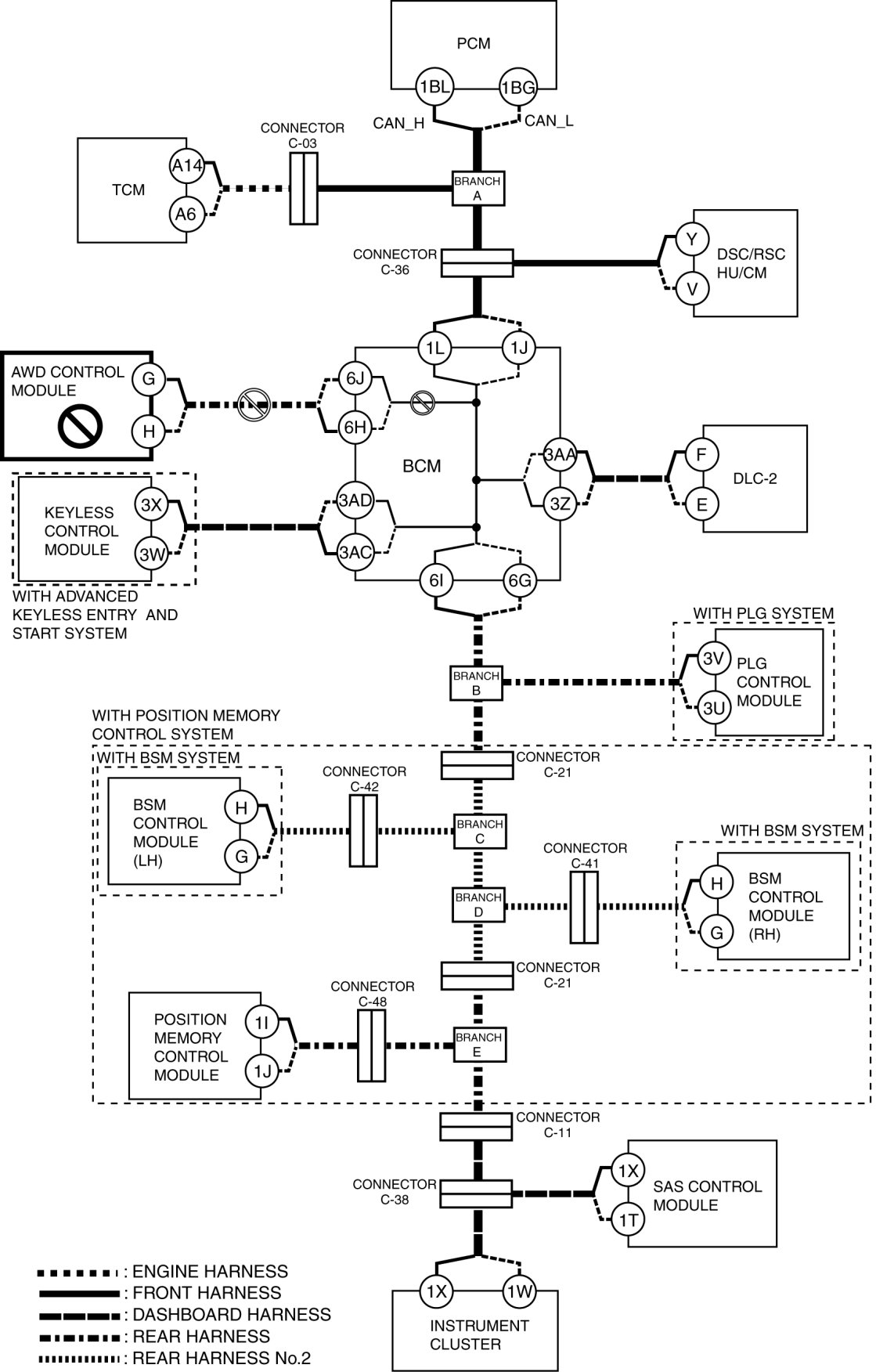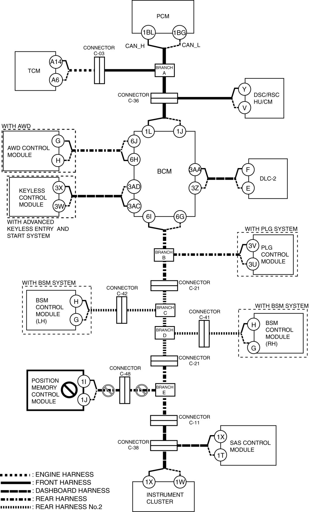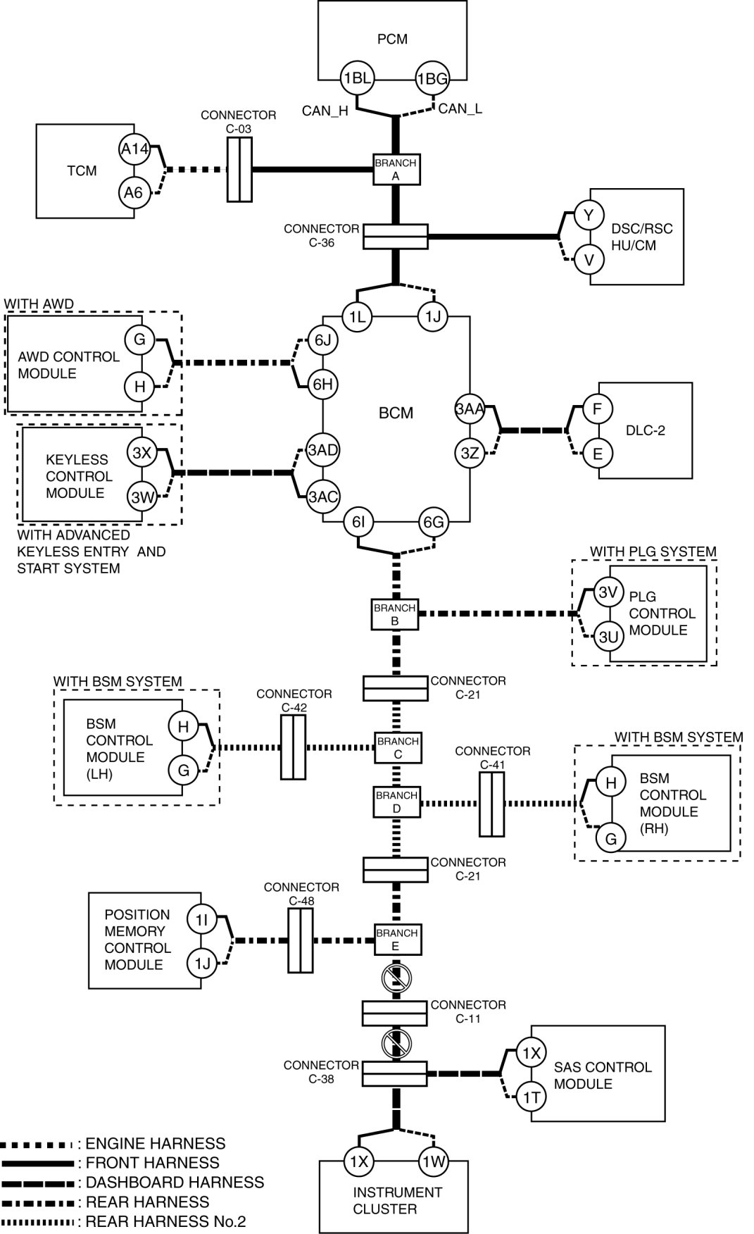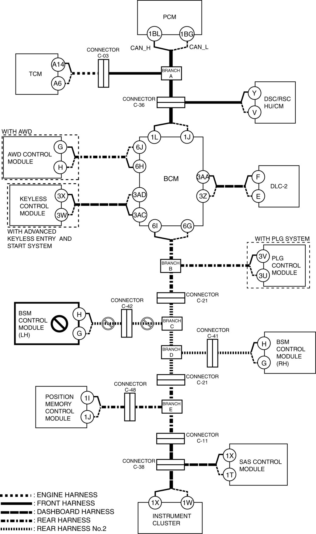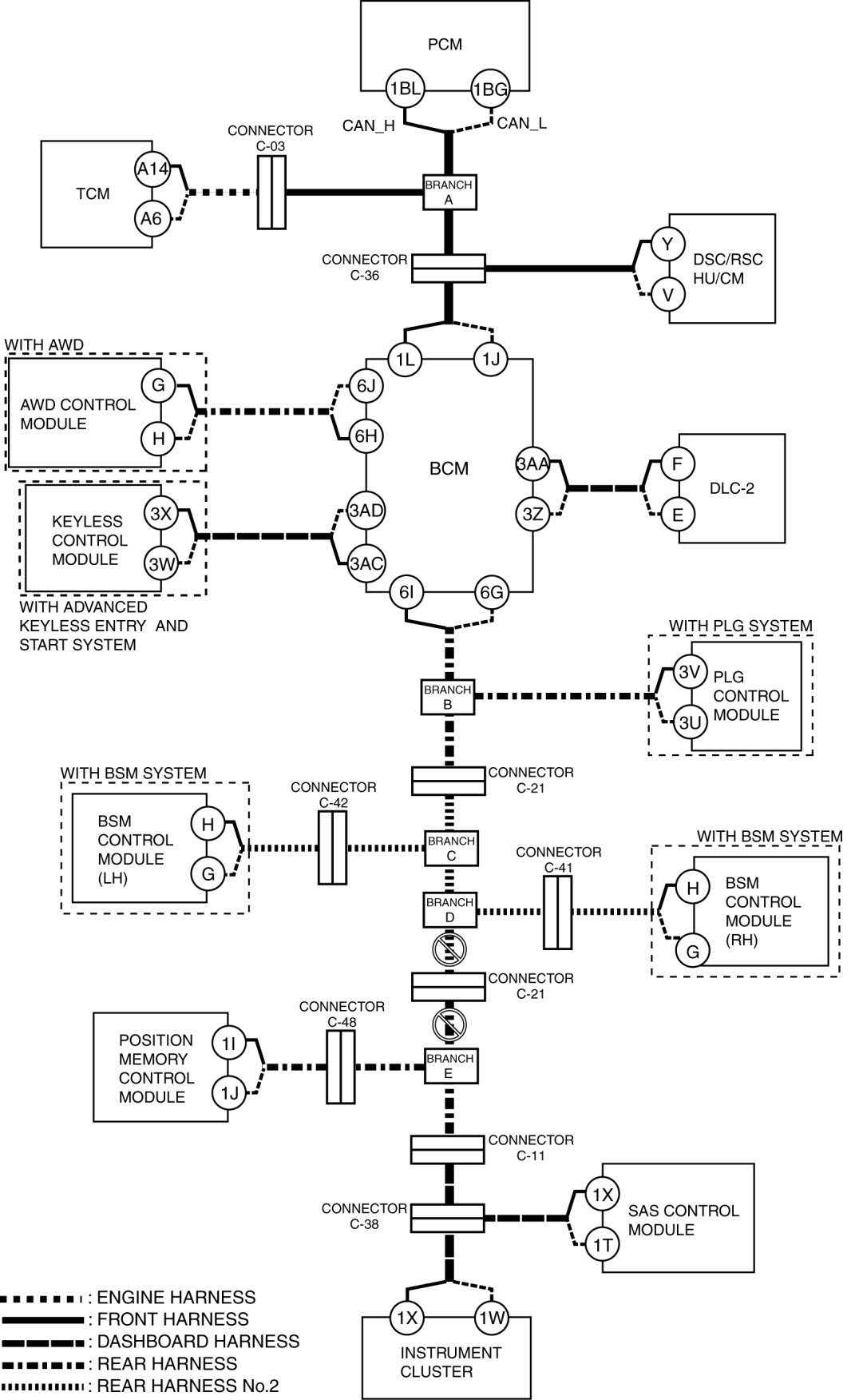 - Wiring harness between DSC/RSC HU/CM terminal Y and connector C-36