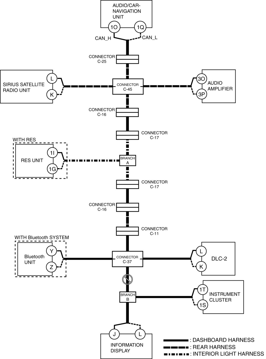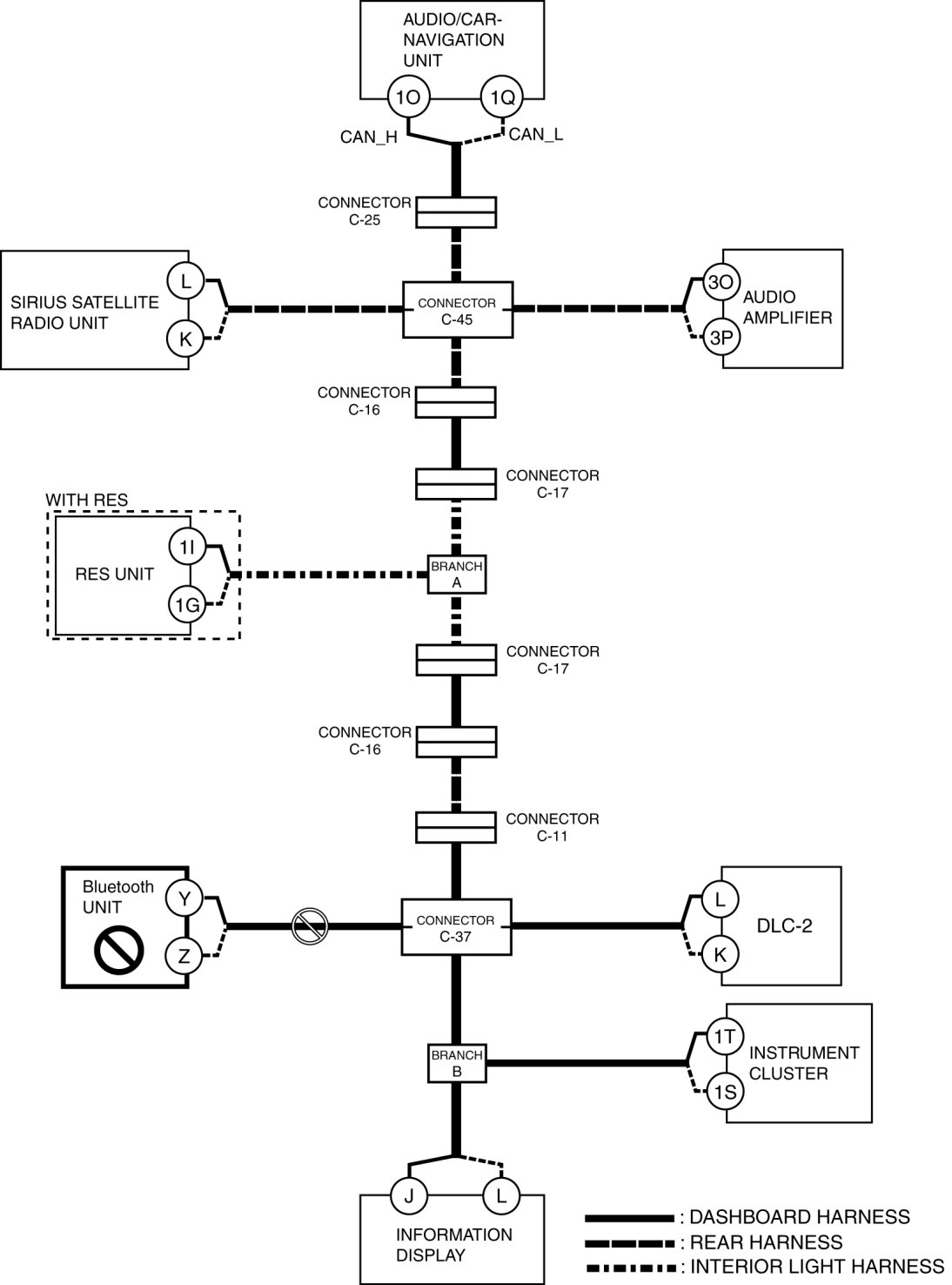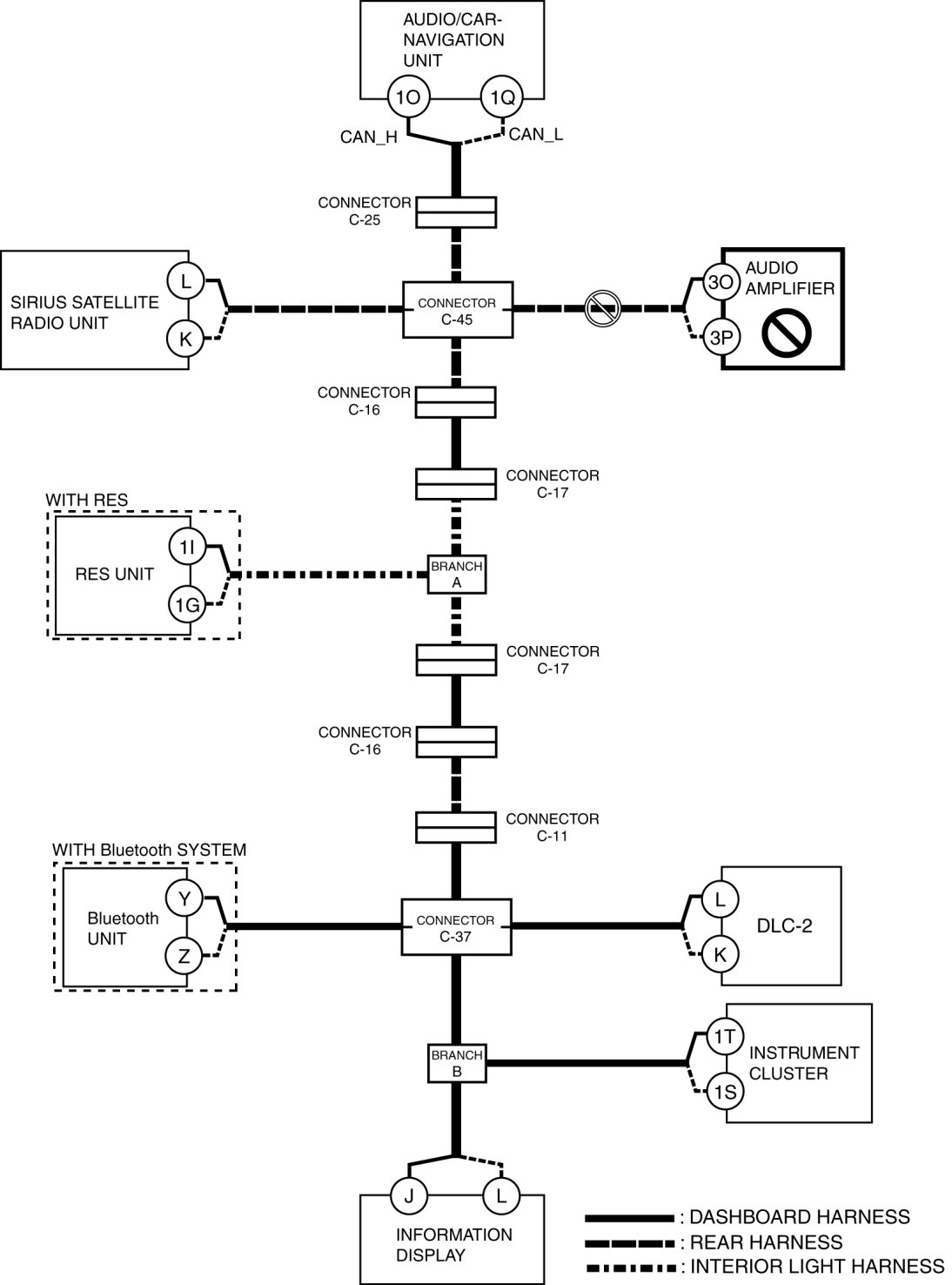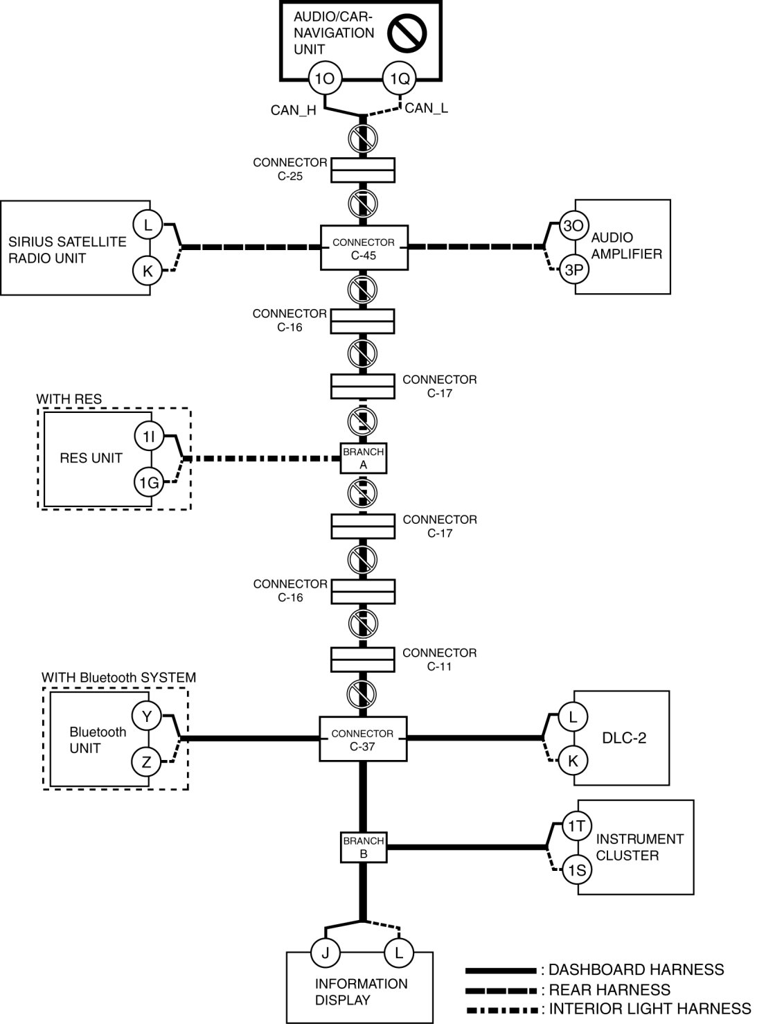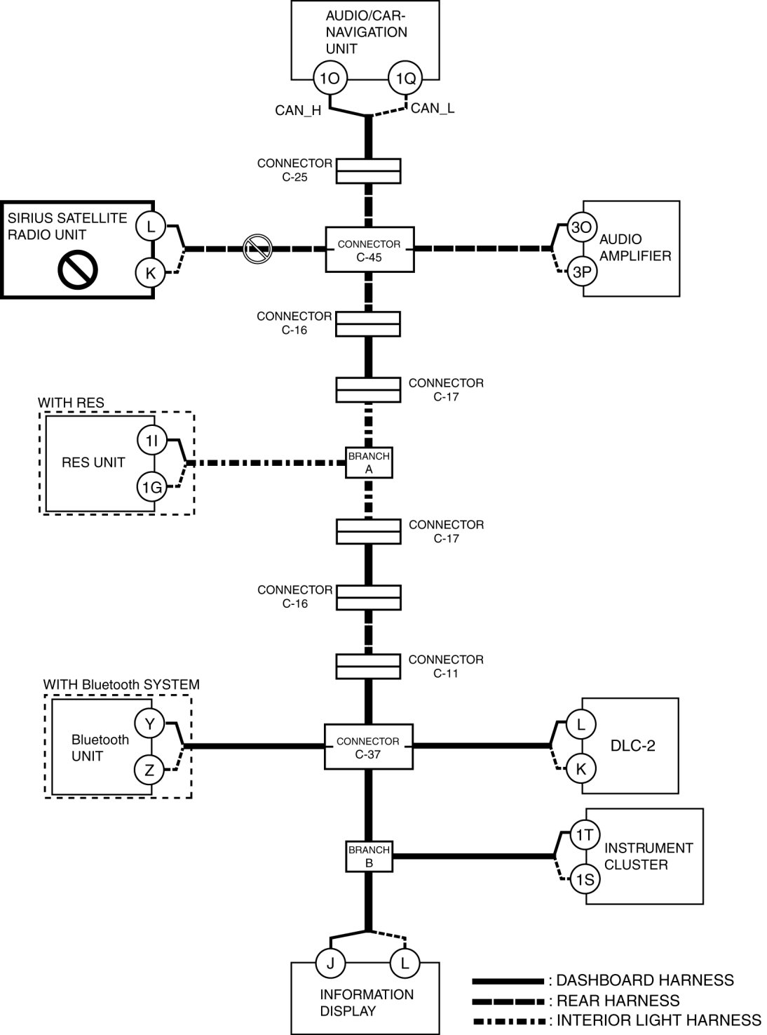- Wiring harness between audio/car-navigation unit terminal 1O and connector C-25