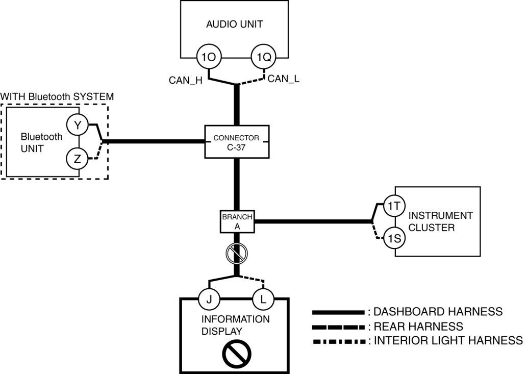 - Wiring harness between Bluetooth unit terminal Y and connector C-37
