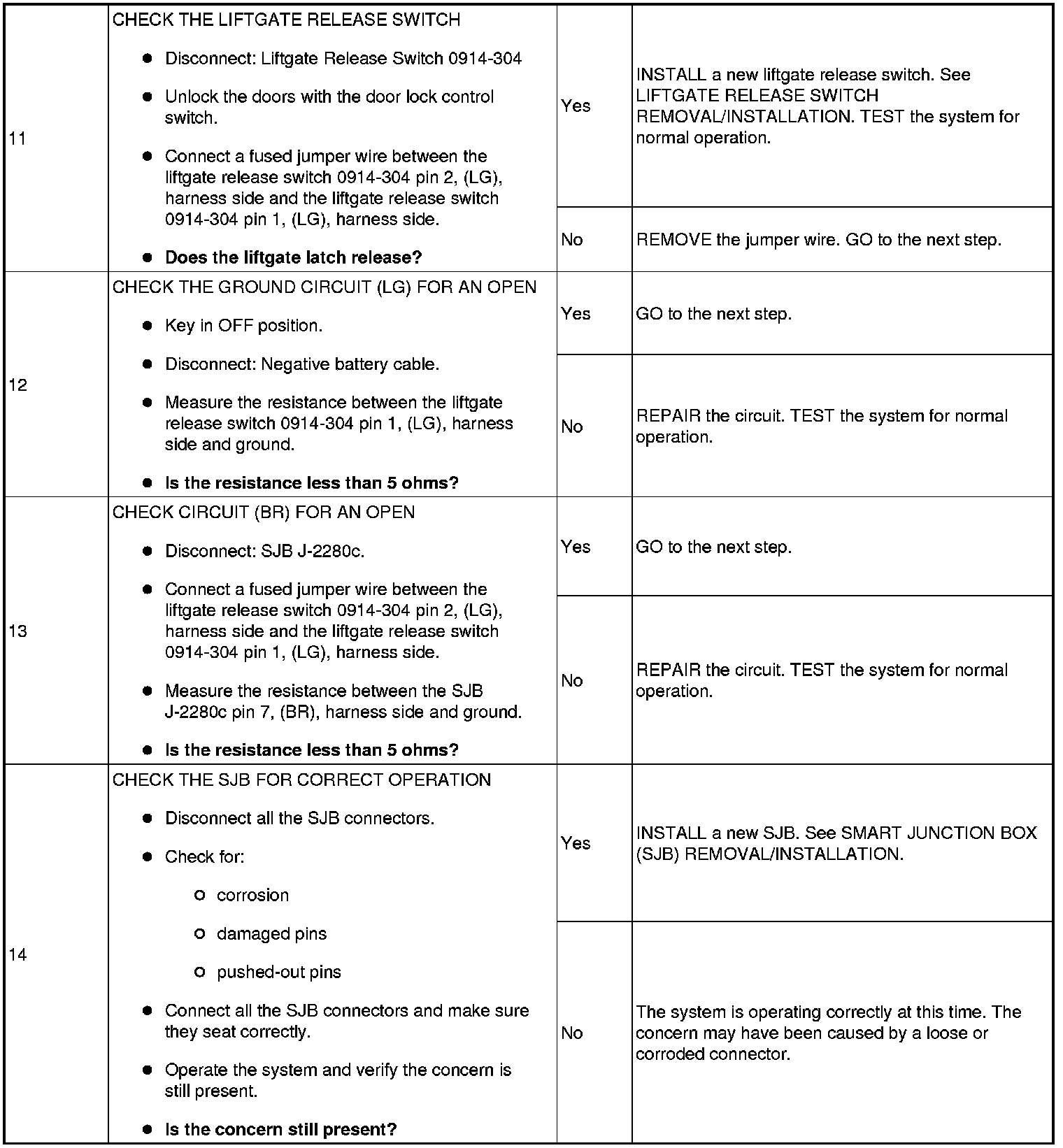 PINPOINT TEST 6: THE LIFTGATE LATCH RELEASE IS INOPERATIVE/DOES NOT OPERATE CORRECTLY
