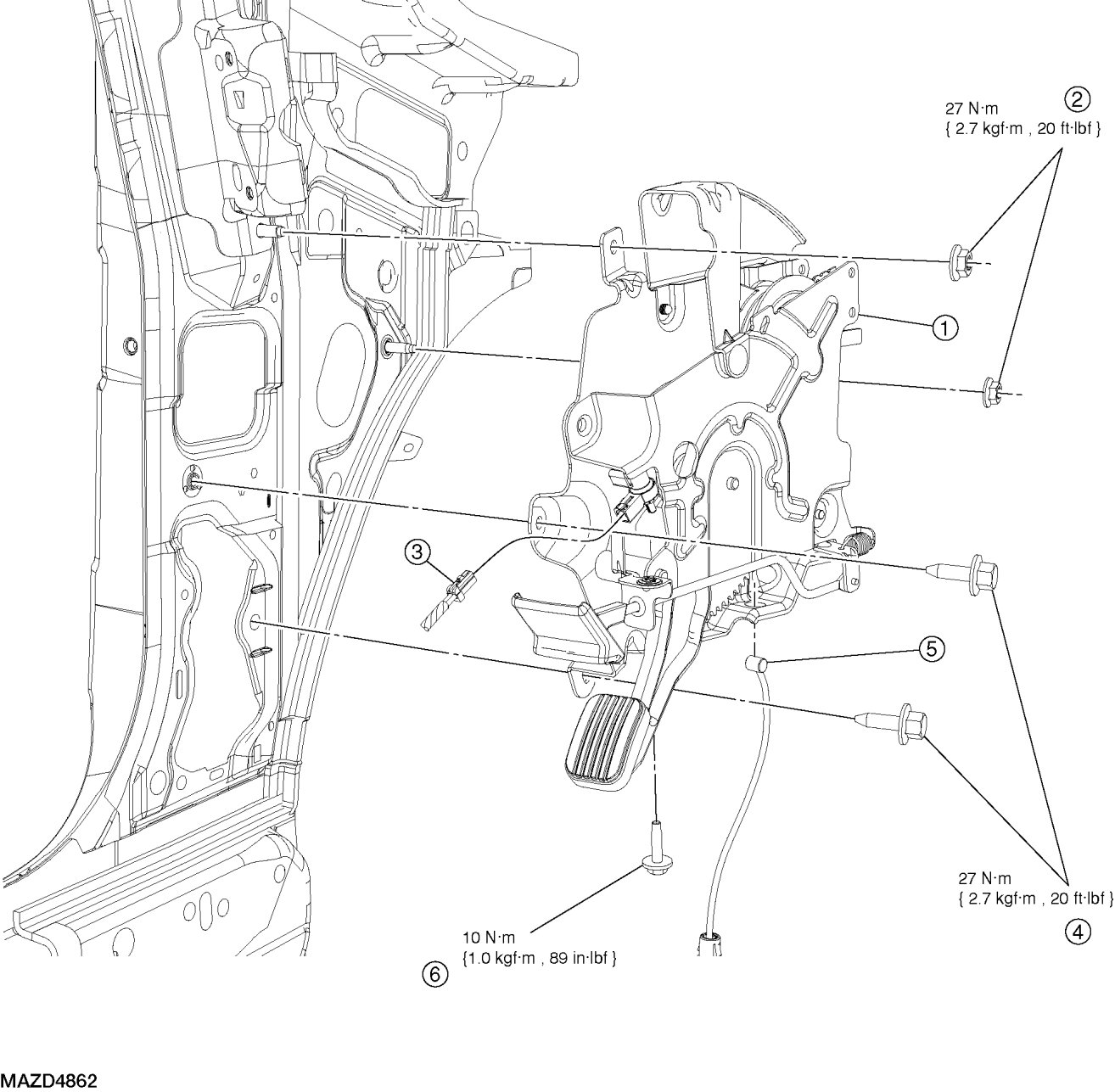 - To install, tighten to 27 Nm {2.7 kgf-m, 20 ft-lbf}.
