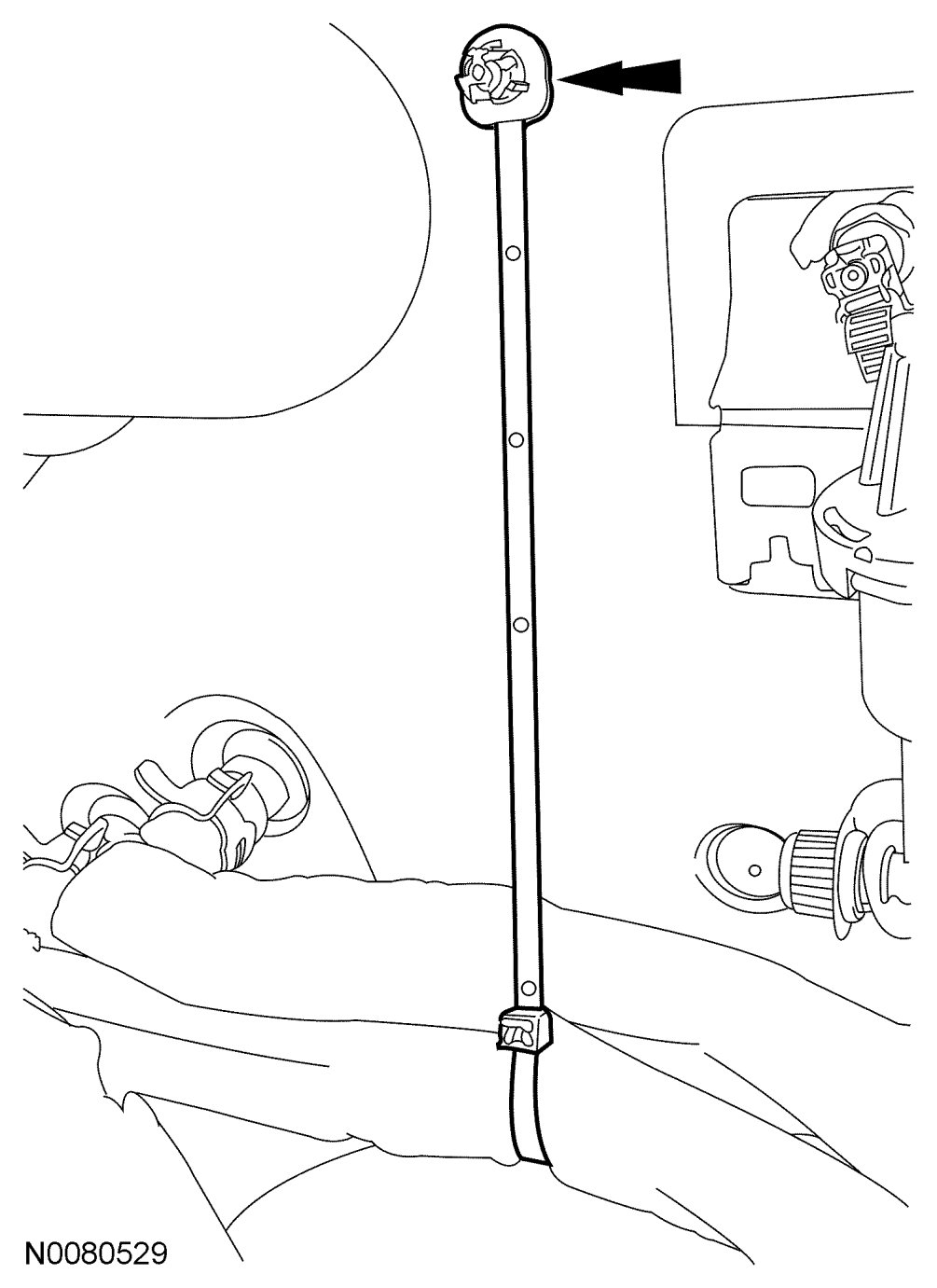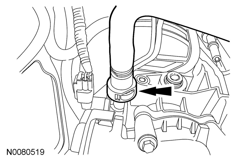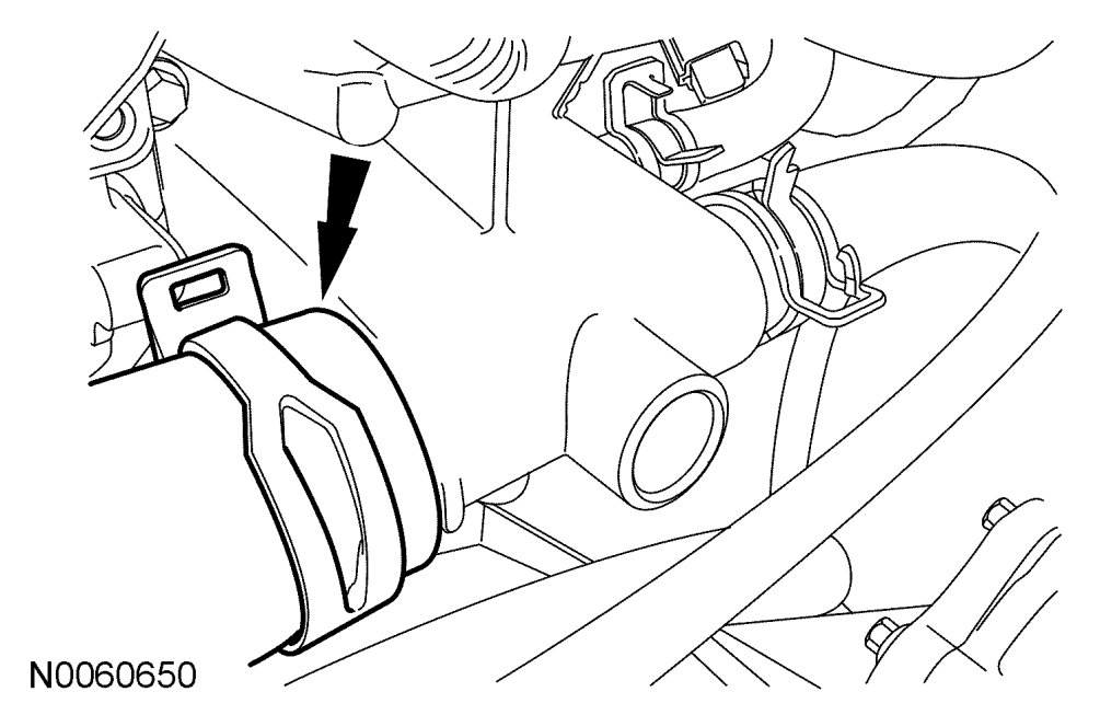 19. Attach the heater hose support strap to the stud.