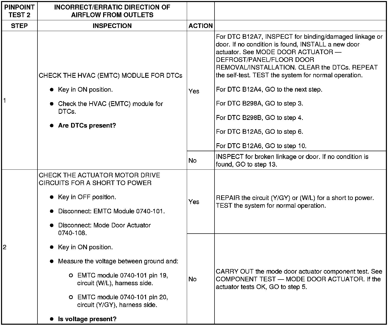 PINPOINT TEST 2: INCORRECT/ERRATIC DIRECTION OF AIRFLOW FROM OUTLETS