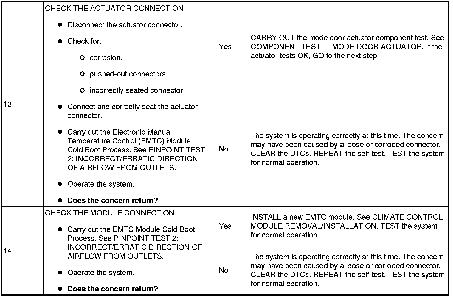 Pinpoint Test 2: Incorrect/Erratic Direction Of Airflow From Outlets