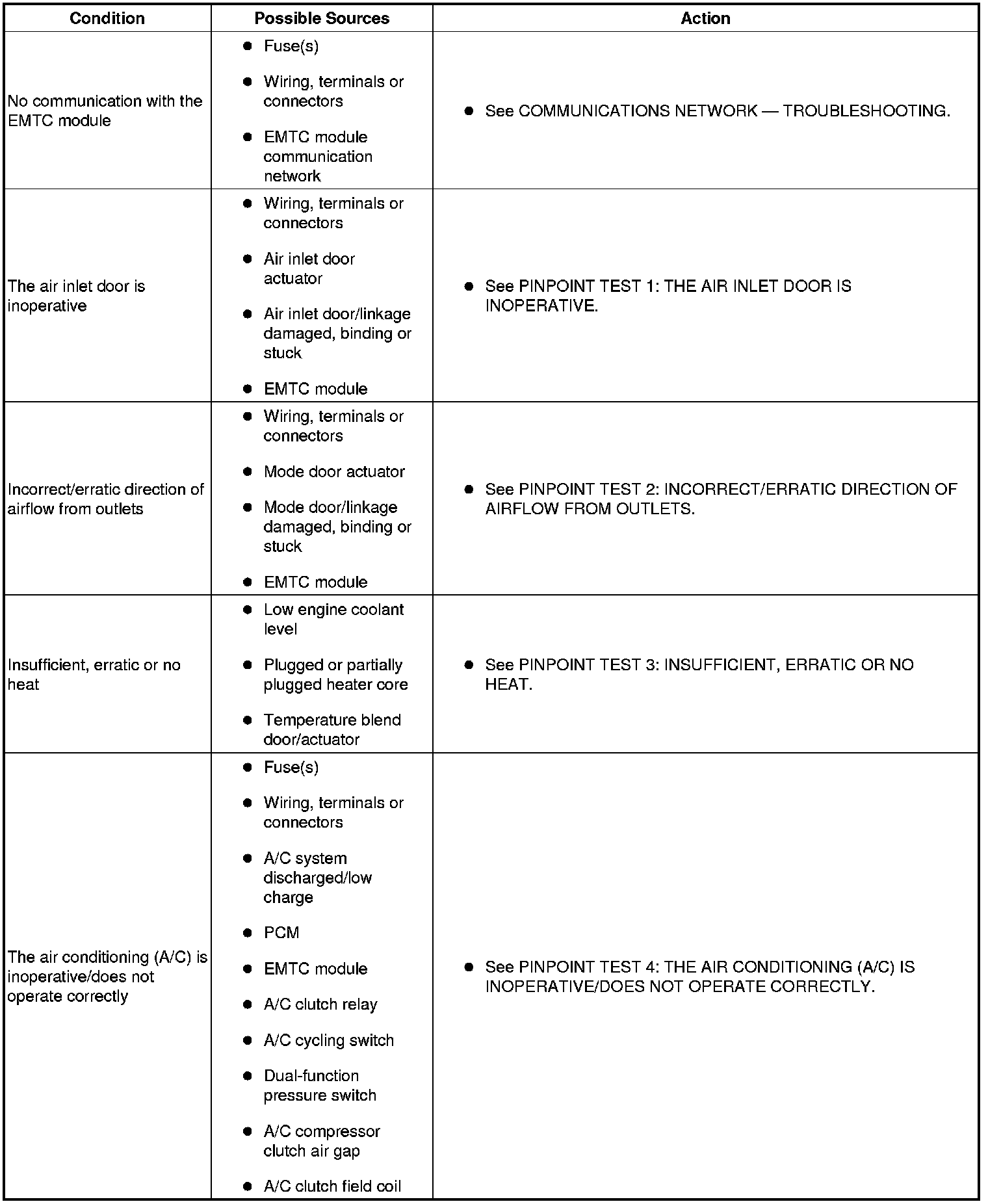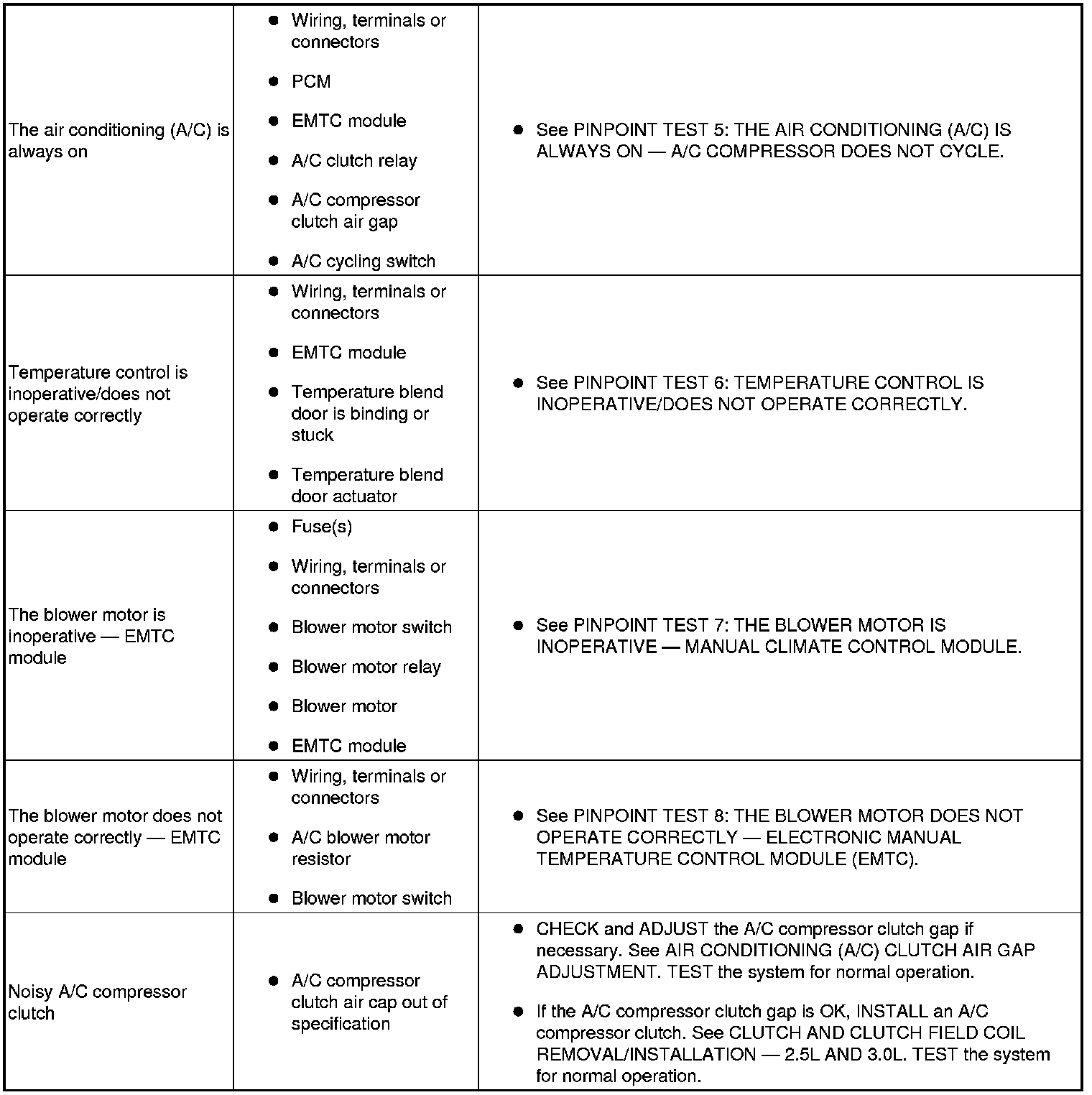 SYMPTOM TROUBLESHOOTING CHART - CLIMATE CONTROL