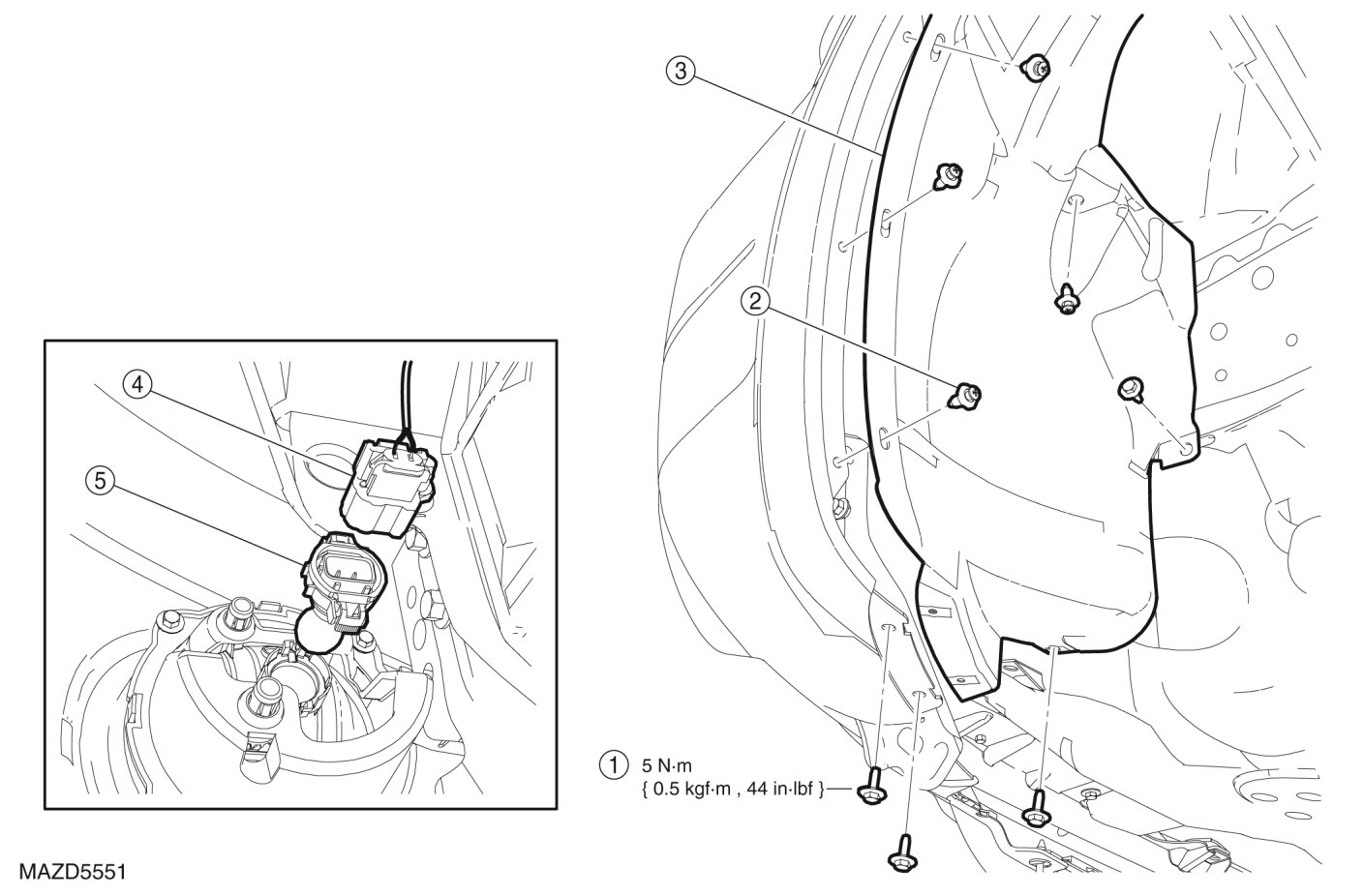 - To install, tighten to 5 Nm {0.5 kgf-m, 44 in-lbf}.