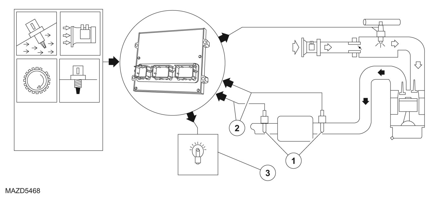 1. The HO2S detects the presence of oxygen in the exhaust and provides the PCM with feedback indicating air/fuel ratio.