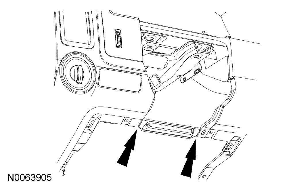 8. Through the side finish panel opening, remove and discard the steering column coupling-to-steering column bolt.