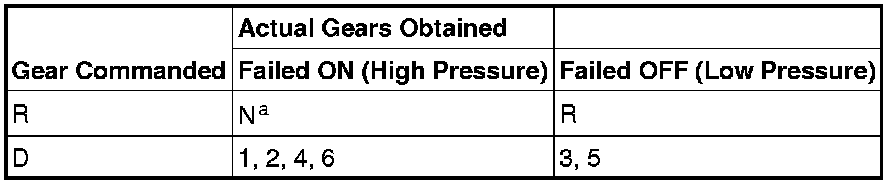 a Reverse is available if the solenoid circuit failed causing transaxle solenoid power control solenoid to remove voltage to all solenoids.b No engine braking.Shift Solenoid E (SSE)