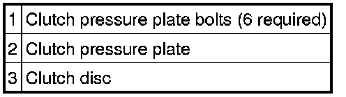 WARNING:The clutch disc and clutch pressure plate are heavy and may fall if not held when the bolts are removed. Failure to follow these instructions may result in serious personal injury.