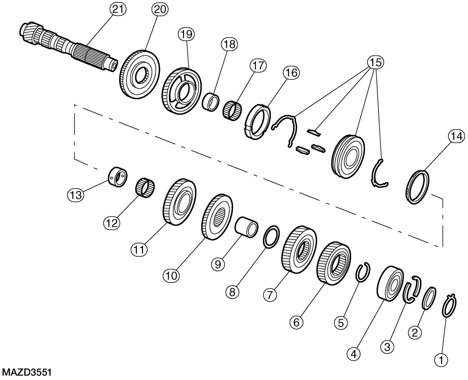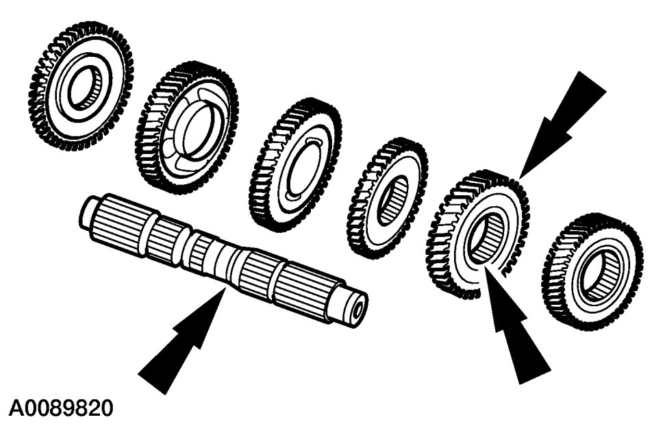 11. Inspect all mainshaft parts for damage, peeling, dents, uneven wear or bending. Install new parts as necessary.