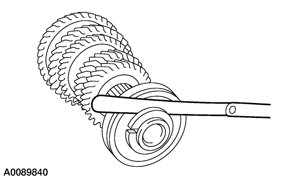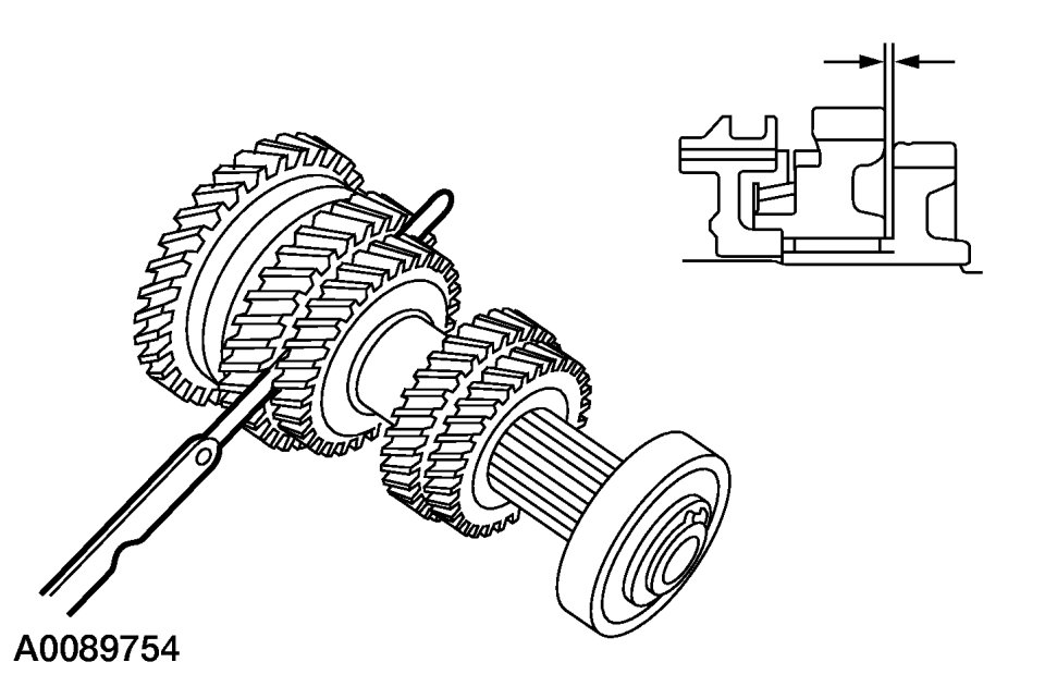 1. Prior to disassembly of the main shaft, measure and record end play for 1st and 2nd gears.
