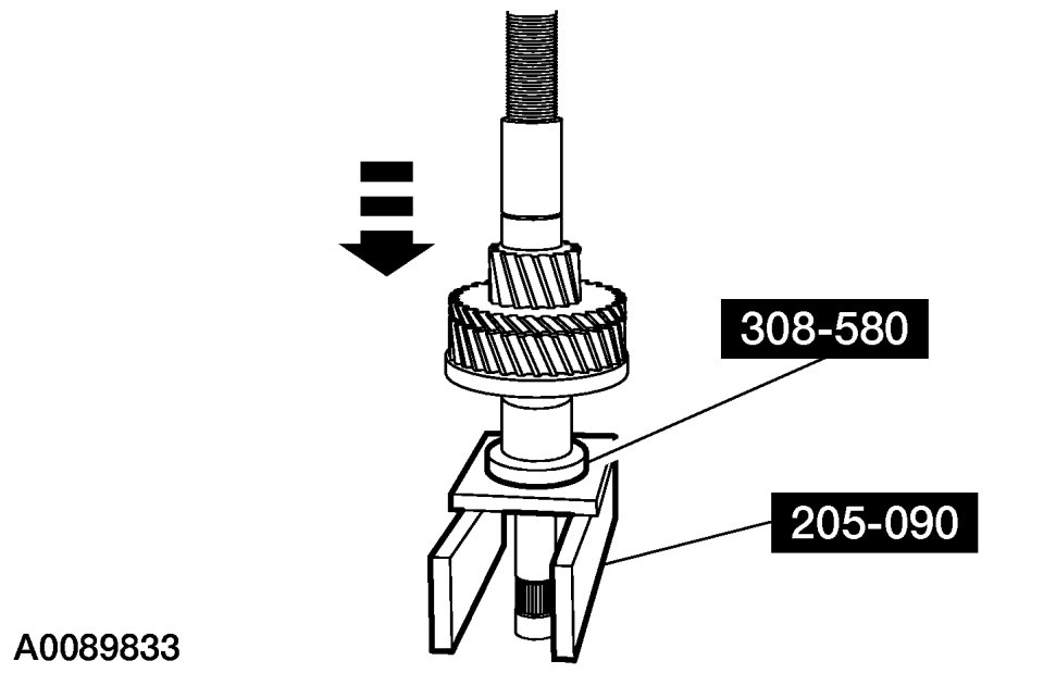 7. Using the Bearing Puller and a suitable press, remove the 5th main gear and the 4th main gear together.