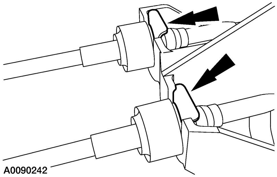 2. Disconnect the gearshift cables from the transaxle bracket.