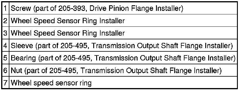 1. Install the new ABS wheel speed sensor ring and the tools on the halfshaft as shown in the previous illustration.