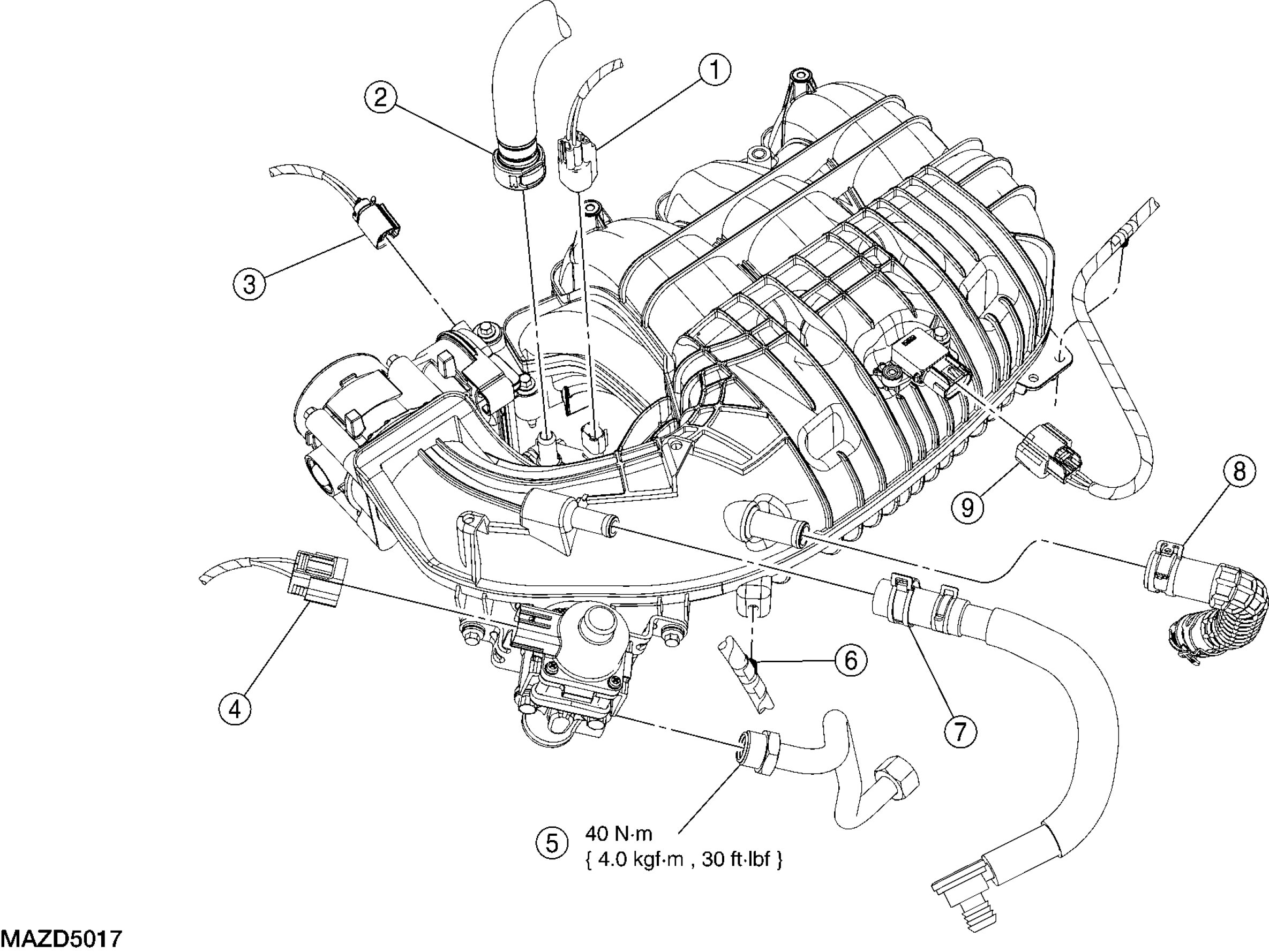 - Tighten to 40 Nm {4.1 kgf-m, 30 ft-lbf}.