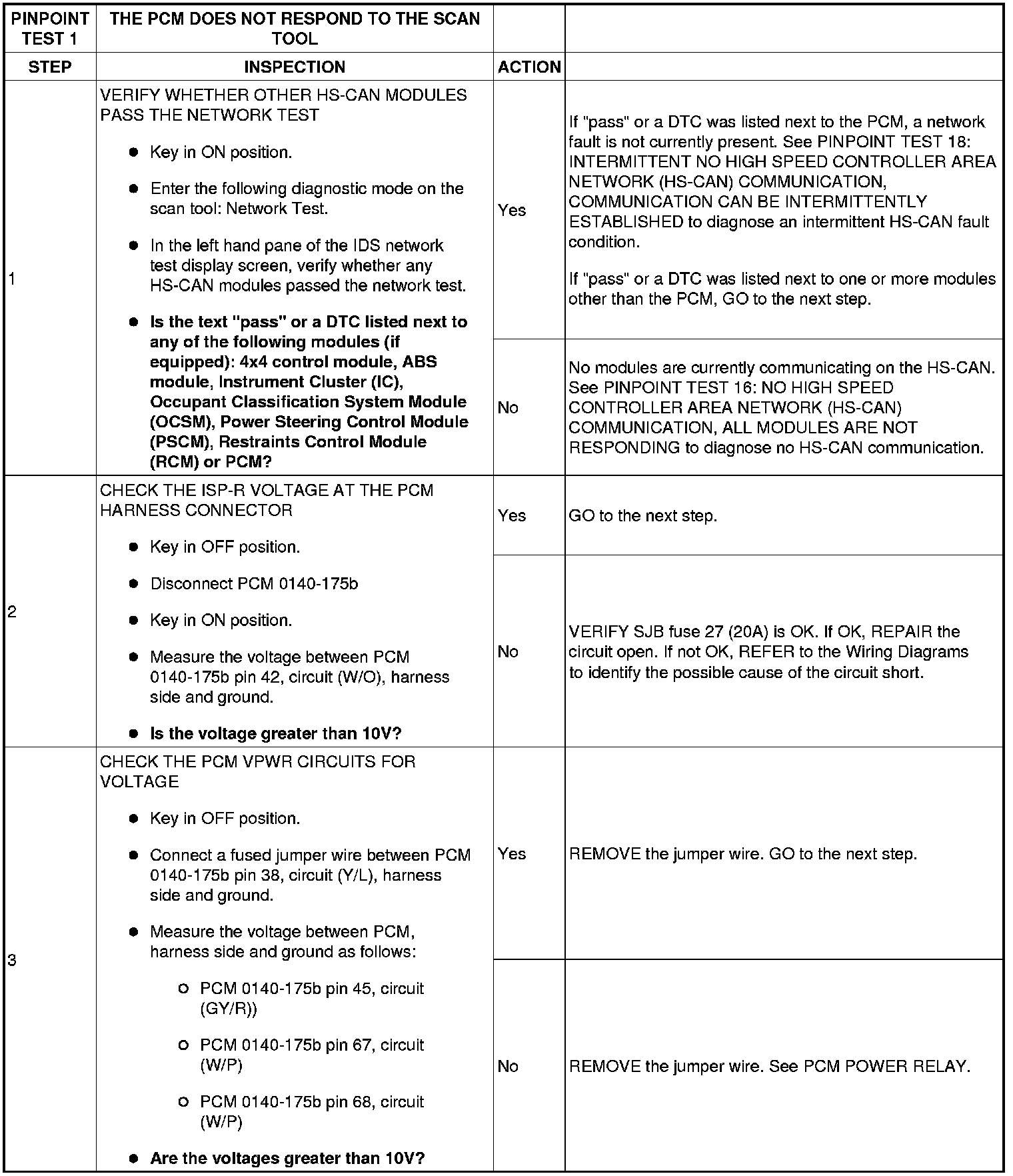 Pinpoint Test 1: The PCM Does Not Respond To The Scan Tool