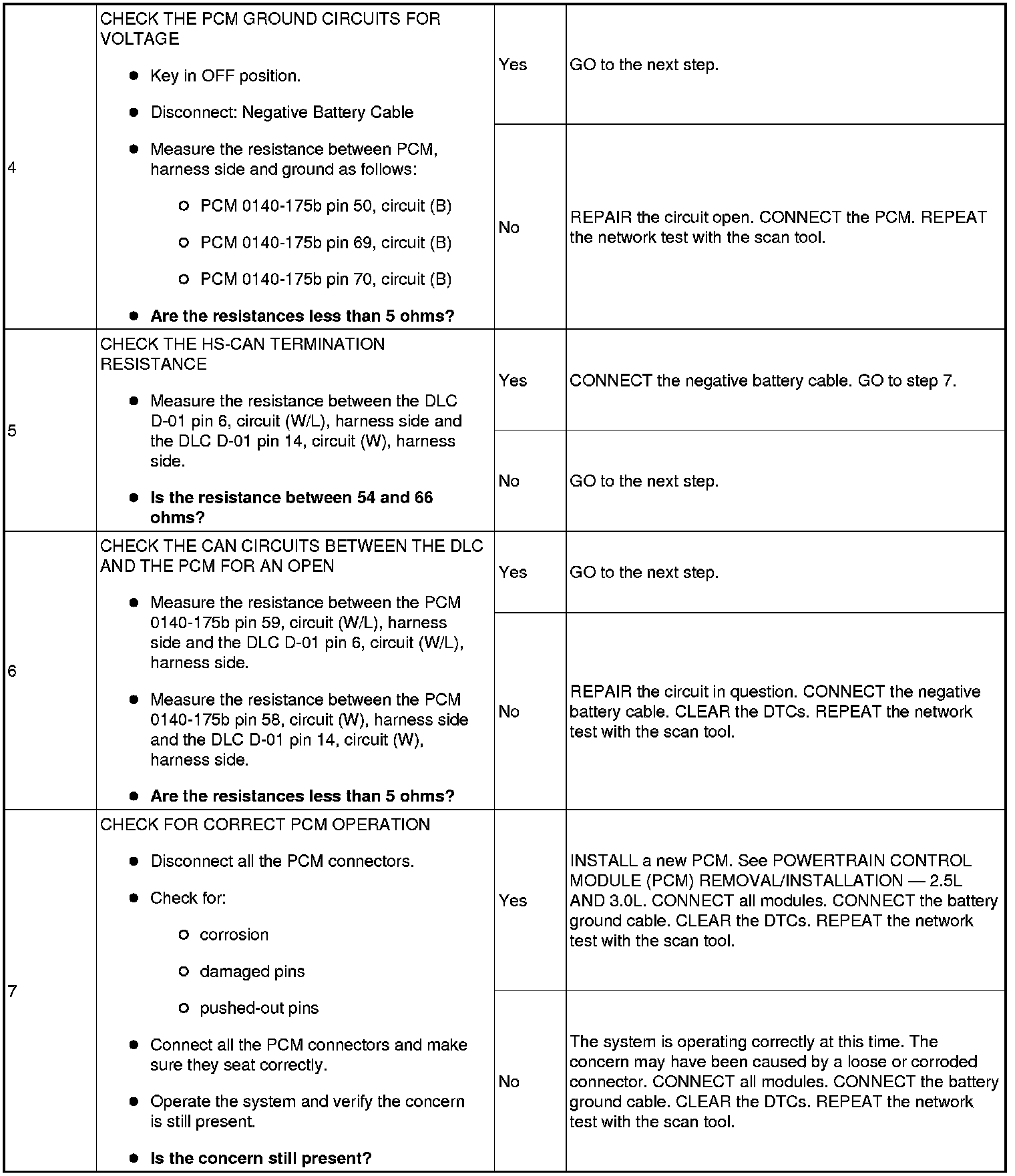 The PCM communicates with the scan tool through the high speed controller area network (HS-CAN). Circuits (W/L) (HS-CAN +) and (W) (HS-CAN -) provide the network connection to the PCM. The PCM shares the HS-CAN network with the ABS module, the (4X4) control module, restraints control module (RCM), occupant classification sensor module (OCSM), power steering control module (PSCM) and the instrument cluster (IC). Voltage for the PCM is provided by circuits (GY/V) and (GY/R). Circuit (B) provides ground.