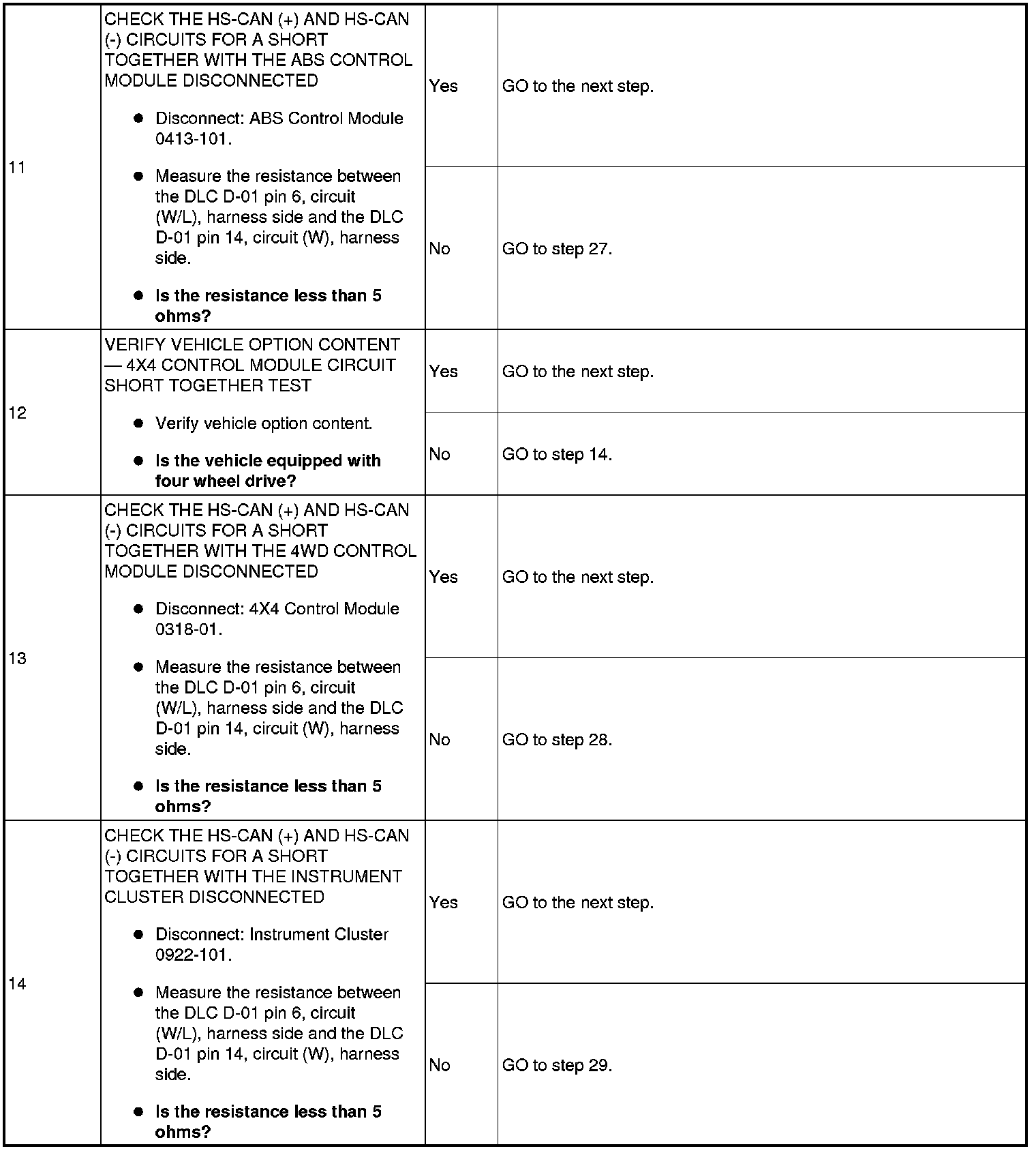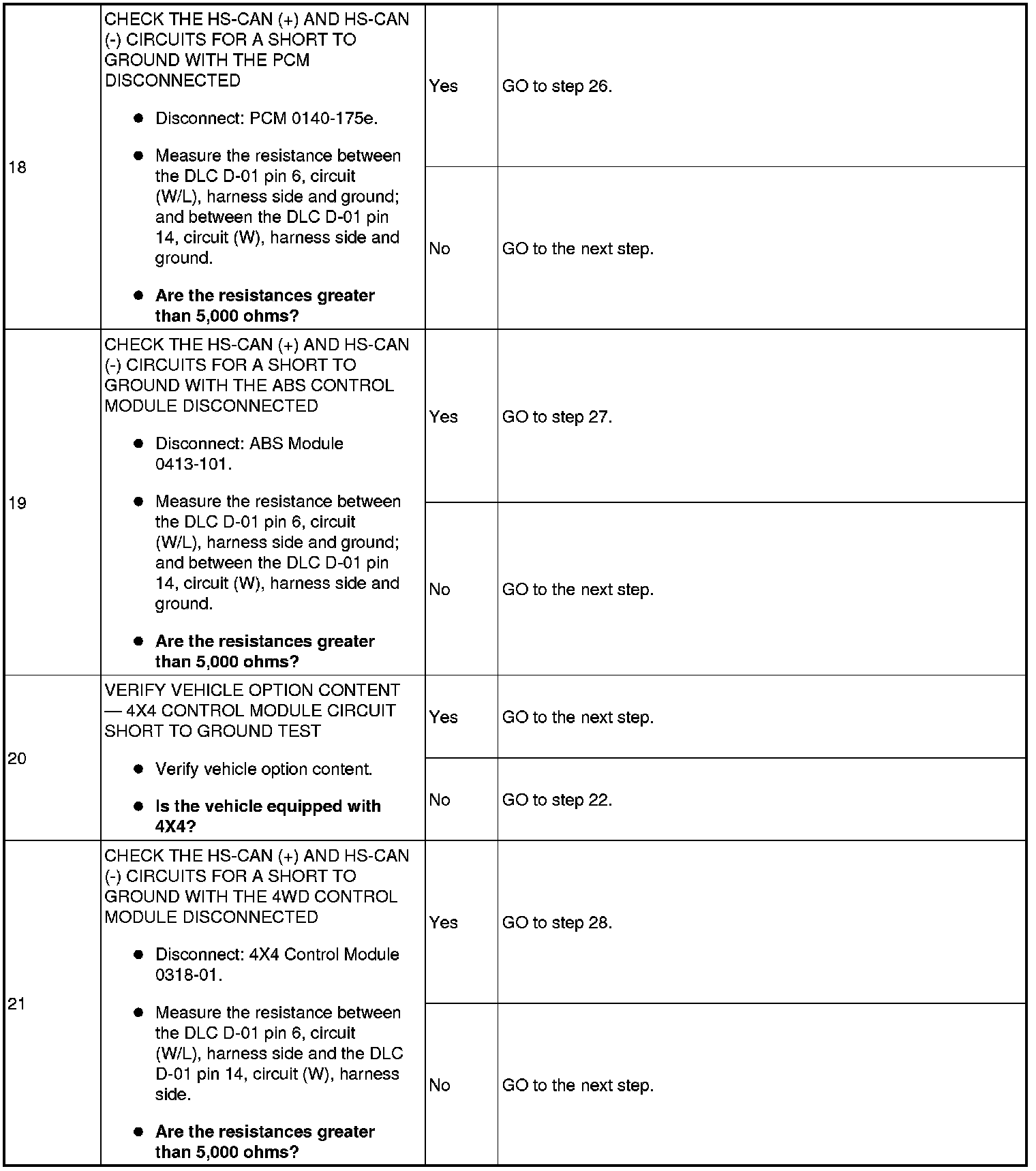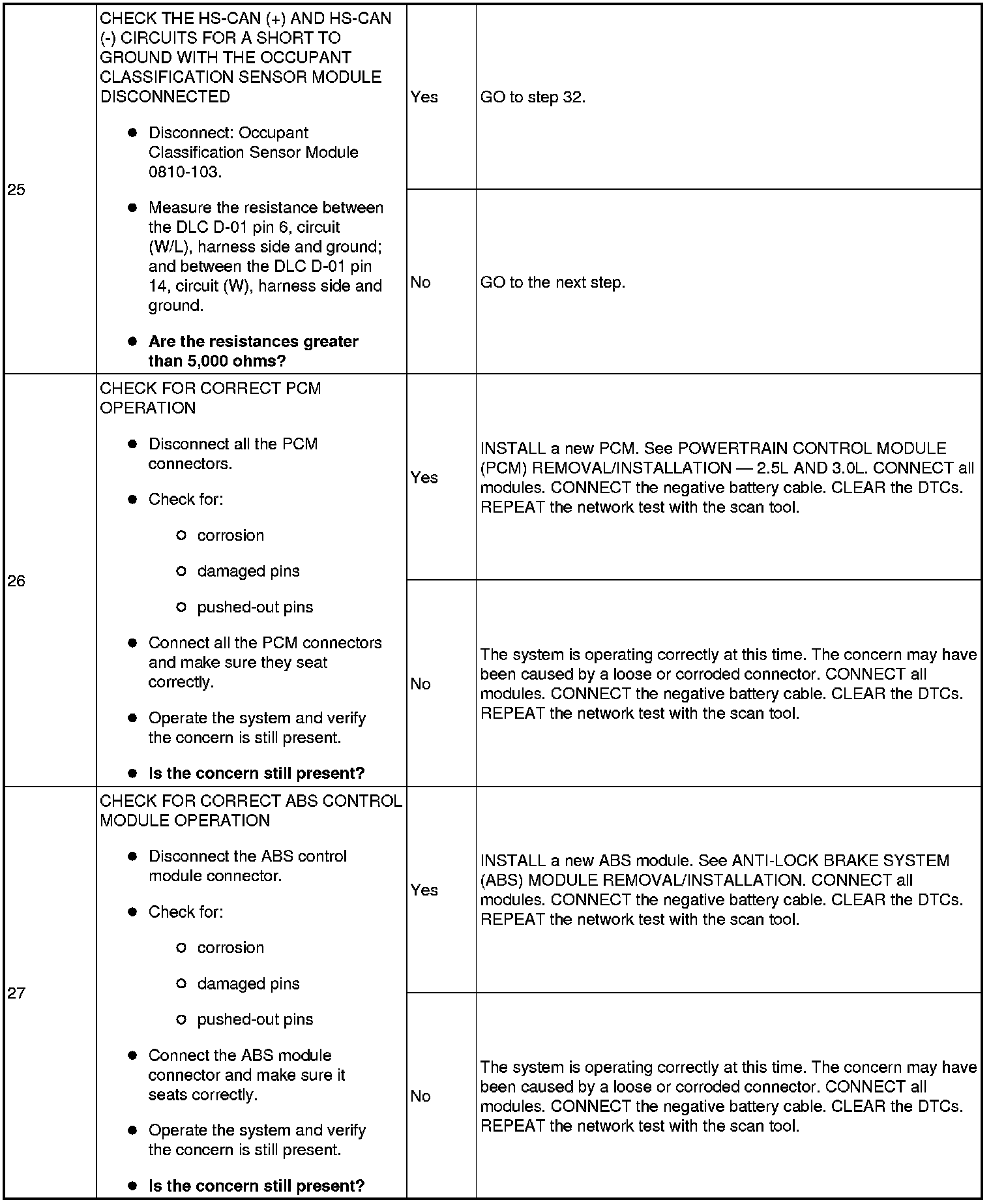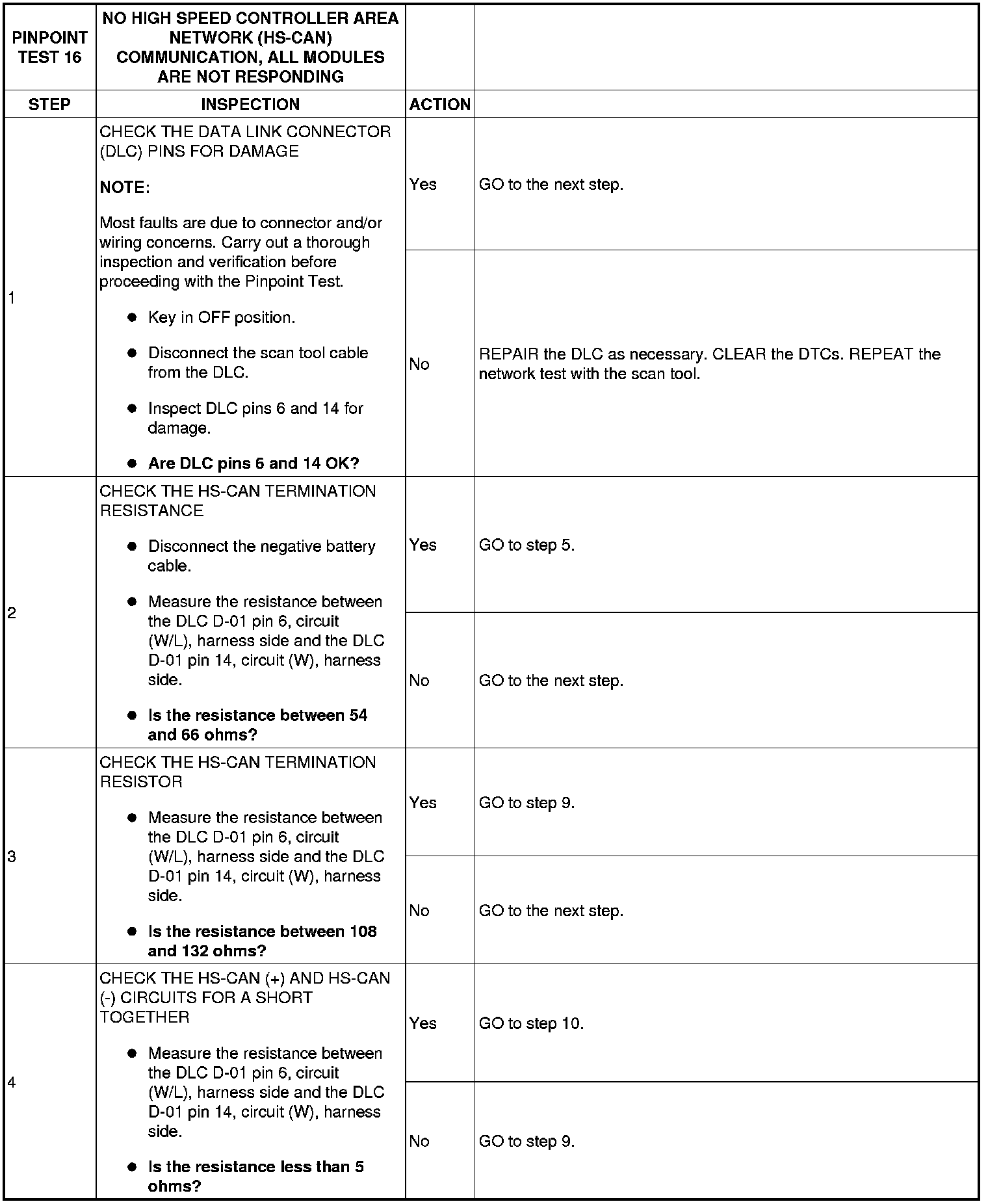 Pinpoint Test 16: No High Speed Controller Area Network (HS-CAN) Communication, All Modules Are Not Responding